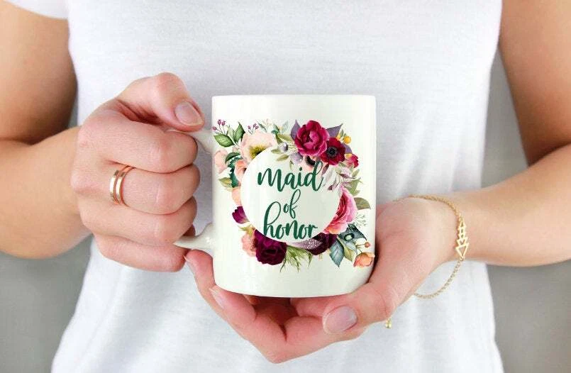 Bridesmaid Coffee Mug Bridesmaid Gift Bridesmaid Proposal Gift Personalized Product Details.. This high quality 11oz. ceramic white mug has a premium hard coat that provides crisp and vibrant color reproduction sure to last for years. Perfect for all hot & cold beverages. The highest quality printing possible is used. It will never fade no matter how many times you wash it. Material: 100% Ceramic. Print both sides. Dishwasher and Microwave Safe. High Gloss + Premium White Finish. Printed in the U.S.A. Personalized & Custom. We support personalized and custom mug to add custom, when placing an order, you can add notes to the "order note" in shipping address section. Also you can contact us directly via message. Shipping Info. Ready to ship in 1 to 2 business days, All products are made-to-order and proudly printed in the United States. Shipped by USPS and DHL, You will receive your order in 5-7 days. Replace & Refund. All products are defective during shipping broken, chipped will be replaced free of charge. You are not satisfied with the product, we will refund 100% money to you. If any other issues arise, please do not hesitate to message, we would be more than happy to assist you.