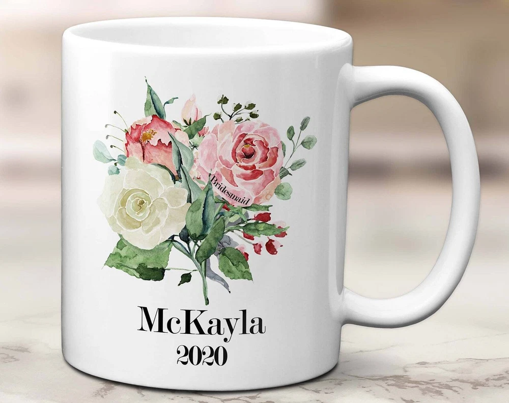 Bridesmaid Personalized Mug Personalized Bridesmaid Gift Bridal Party Gift Product Details.. This high quality 11oz. ceramic white mug has a premium hard coat that provides crisp and vibrant color reproduction sure to last for years. Perfect for all hot & cold beverages. The highest quality printing possible is used. It will never fade no matter how many times you wash it. Material: 100% Ceramic. Print both sides. Dishwasher and Microwave Safe. High Gloss + Premium White Finish. Printed in the U.S.A. Personalized & Custom. We support personalized and custom mug to add custom, when placing an order, you can add notes to the "order note" in shipping address section. Also you can contact us directly via message. Shipping Info. Ready to ship in 1 to 2 business days, All products are made-to-order and proudly printed in the United States. Shipped by USPS and DHL, You will receive your order in 5-7 days. Replace & Refund. All products are defective during shipping broken, chipped will be replaced free of charge. You are not satisfied with the product, we will refund 100% money to you. If any other issues arise, please do not hesitate to message, we would be more than happy to assist you.