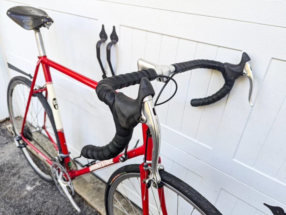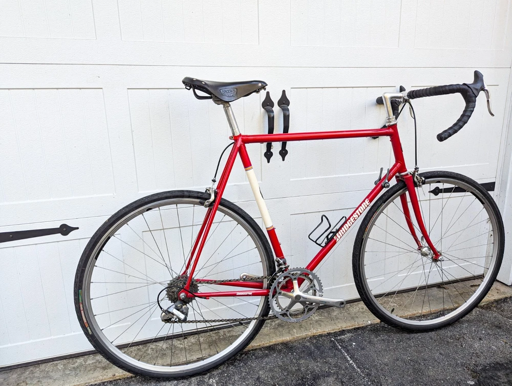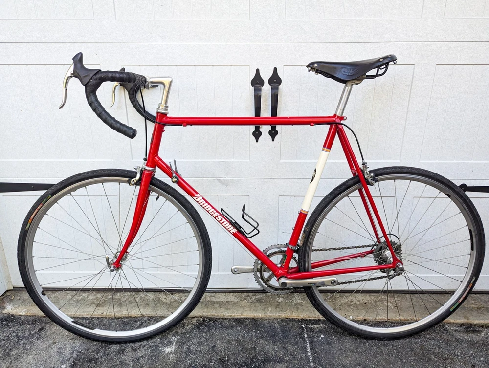 Up for sale is a wonderful Bridgestone RB1 60cm. The frame is in good shape, straight and true. There are a few paint chips from riding, but no dents or dings. BB - TT: 60cm TT: 60cm Standover: 33" Specs: Frameset: Bridgestone RB1 (Shimano 600 headset) Wheelset: Velocity hoops laced to Shimano 600 Hubs with 700x32c Vittoria Randoneur Cross Crankset: Shimano 600 53/39T 175mm Derailleurs: Shimano 600 2x7 Brakes: Dia Comp BRS 300 Saddle: Brooks B17 (w/ Brooks Bar tape