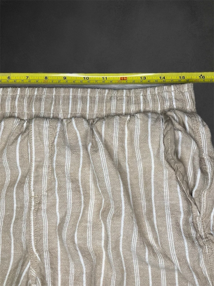 Briggs Pants Womens Large Beige Ivory Striped Linen Blend Pull On Elastic Waist