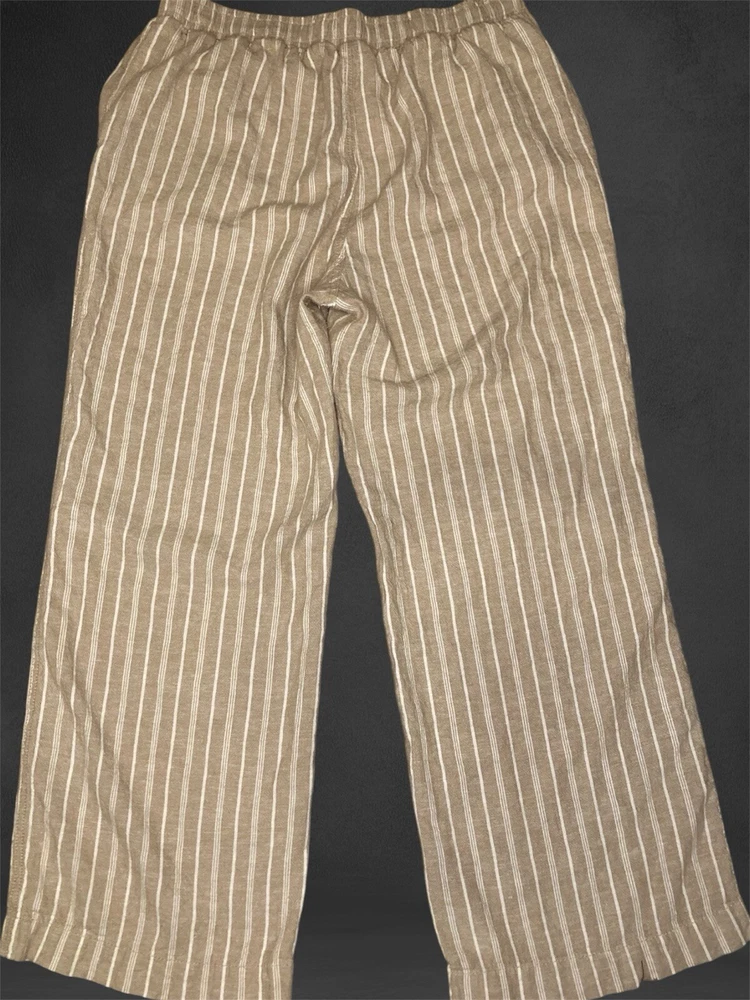 Color: Multicolor Season: Fall, Spring, Summer, Winter Accents: Soft Occasion: Casual Inseam: 27.5 in Type: Pants Pattern: Striped Material: Linen, Rayon Waist Size: 30 in Brand: Briggs Garment Care: Machine Washable Size Type: Regular Closure: Pull On Fit: Relaxed Features: Elastic Waist Department: Women Size: L Fabric Type: Linen Style: Sweatpants Rise: High (Greater than 10.5 in) Vintage: No Front Type: Flat Front Leg Style: Wide-Leg Theme: Beach, Bohemian