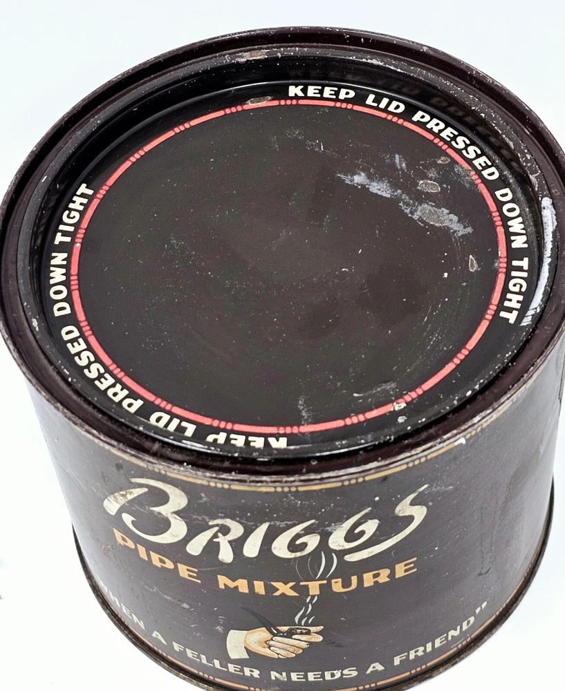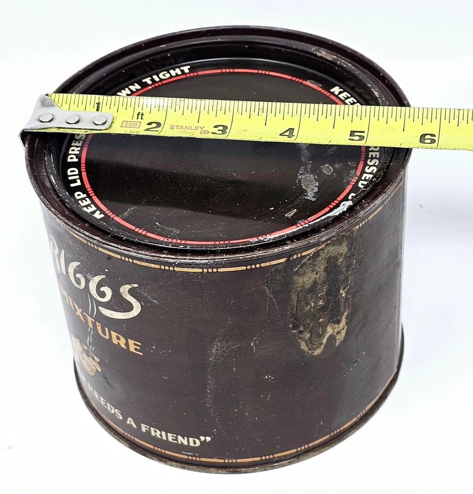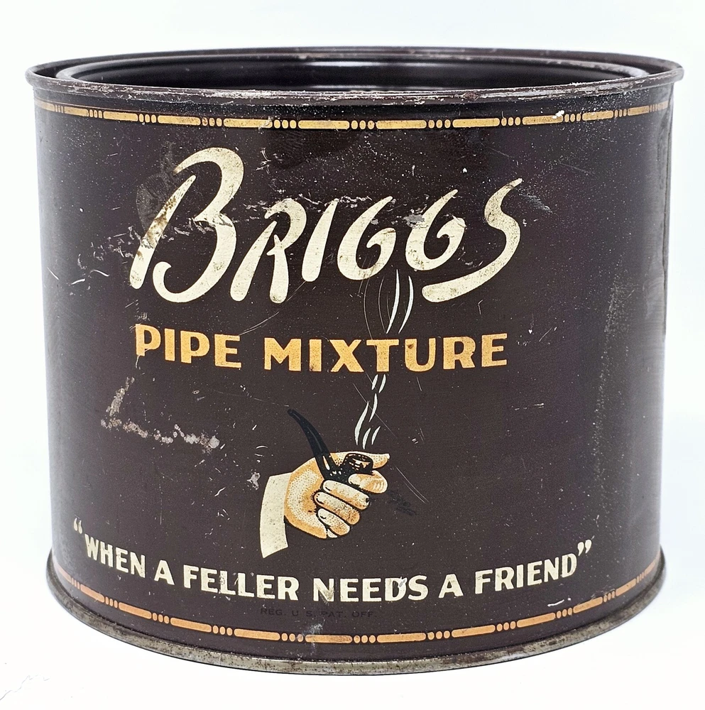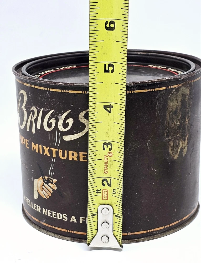 The Briggs Pipe Mixture Smoking Tobacco Empty Tin is a vintage collectible item that was manufactured in the United States by Briggs. The round brown tin measures 5.75 inches wide and is designed to hold smoking tobacco. This tin is a great addition to any tobacciana collection, showcasing the history and craftsmanship of Briggs tobacco products. Perfect for display or as a nostalgic piece for pipe smokers, this vintage tin brings a touch of nostalgia to any collection.