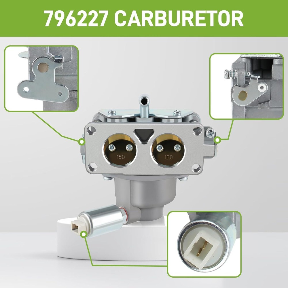 Note: A minor difference in carburetor design may result in a different model. Please carefully check if the pictures match with your carburetor. And feel free to contact us if you are not sure if this is the right model for you. Fit For: Fit for Many Engine Models: 405777, 406777, 407677, 407777, 441777, 442577, 445577, 445677, 445777, 445877, 445977, 446677, 446777, 446877, 446977, 44677A, 40F777, 40G777, & 40H777 Fit for Many Electrolux AYP Lawn Mower Models: 7178C99, 7187A99, 8188A89, 8188B89, 8209A89, 8209A99, 8209B89, 8228A89, 8228B89, 8248A99, 9178B99, 9187A99, 9209A99, & 8208A39 Fit for Many John Deere Lawn Mower Models: L118, L120, LA130, LA135, LA140, LA145, & LA150 Fit for Many Toro Lawn Mower Models: 2000-2005 - 74590 13AT61RH048 LX466 For Replaces and Electrolux Part's: 591378, 694952, 695328, 695330, 695918, 695919, 695920, 696132, 696133, 697351, 698455, 699958, 699966, 796321, 796322, 796323 For Replaces John Deere Part's: MIA10632 Note : this carburetor doesn't fits , automatic Features: This product comes with best after-sales service. We are committed to delivering durable high-quality carburetors for you. Thank you for choosing our carburetor! Package Includes: 1 × Carburetor (As Picture Show, Contact Us If Receive With Missing Parts.)