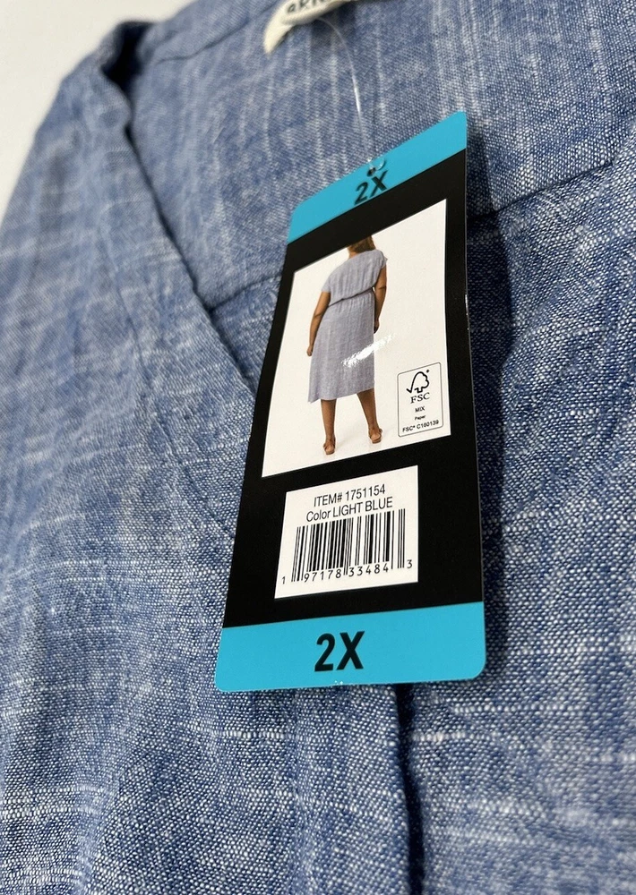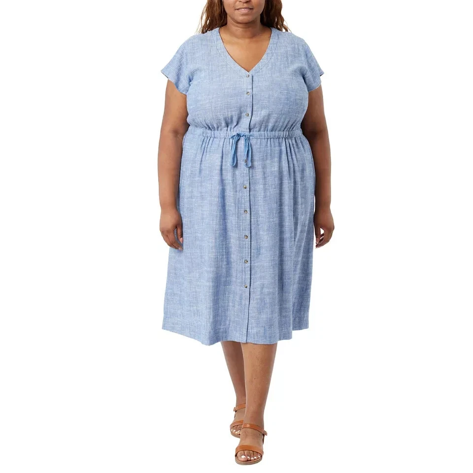 Briggs Women's A-Line Button-Front Side Pockets Dress, Light Blue, Size 2X