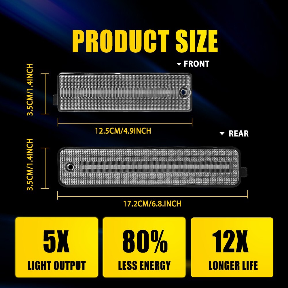 Fit for: 1998-2002 Pontiac Firebird Specifications: Lens color: Clear Mode: Yellow light+Red light (constantly illuminated) Waterproof grade: IP67 Service life: 50000 h+ Placement on vehicle: Front and rear fender Features: *Exquisite Appearance: Attractive side light is 1:1 design according to the original model for fitting the car perfectly. *High Brightness: Powerful LEDs is designed for visually striking and visibility enhancing. *Water-Proof: Ultrasonic technology makes waterproof ability stronger to ensure your driving safety (waterproof grade: IP67). *Stable Performance: 4X LED Side Marker Light Front Rear Set Amber Red for 1998-2002 Pontiac Firebird Fit for: 1998-2002 Pontiac Firebird Specifications: Lens color: Clear Mode: Yellow light+Red light (constantly illuminated) Waterproof grade: IP67 Service life: 50000 h+ Placement on vehicle: Front and rear fender Features: *Exquisite Appearance: Attractive side light is 1:1 design according to the original model for fitting the car perfectly. *High Brightness: Powerful LEDs is designed for visually striking and visibility enhancing. *Water-Proof: Ultrasonic technology makes waterproof ability stronger to ensure your driving safety (waterproof grade: IP67). *Stable Performance: Longer service life (more than 50,000 hours) with friendly customer support for bringing you satisfied shopping experience. *Less Consumption: Better energy-saving, better environmental protection. Note: In order to ensure the item fit your vehicle properly, please check and confirm the model before purchasing. Packaging include: LED Side Light * 4 table#Attrid701792 {border-collapse:separate} table#Attrid701792 tr:last-child td:last-child{border-bottom-right-radius: 10px;} table#Attrid701792 tr:last-child td:first-child{border-bottom-left-radius: 10px;} table#Attrid701792 tr:nth-of-type(1n){} table#Attrid701792 tr:nth-of-type(2n){} table#Attrid701792 td{padding: 3px;} table#Attrid701792{font-size:12px !important;font-family:Arial !important;color:#686868 !important;text-align:left !important;} table#Attrid701792 td:first-child{font-weight: 900; !important;;padding:3px;border:1px none ;} #m_pre701792{border:1px none ;overflow: hidden;border-radius: 10px;} Item Specifics Brand AUXITO Manufacturer Part Number YZB-FIREBIRD-98-02TM Other Part Number 4PCS LED Front & Rear Bumper Side Marker Lights Interchange Part Number For 1998-2002 Pontiac Firebird All Models Placement on Vehicle Front Lens Color Clear Bulbs Included Yes Manufacturer Warranty 1 Year Fitment Type Direct Replacement Certifications DOT Fit For For 1998-2002 Pontiac Firebird All Models Light Color Yellow light&Red light (constantly illuminated) Number of Bulbs 4 Lighting Technology LED Features CAPA-Certified Type Bumper Side Marker Signal Lights Housing Color Clear Voltage 12 V Fitment For 1998-2002 Pontiac Firebird Universal Fitment No Tips Please feel free to contact us if you have any questions FAQ ♥ If you have a decoding problem or any other problems, please contact us first, we will help you with it. We will reply you within 24 hours in working days. I'm a new seller, thanks a lot for your trust and convince! I will serve you with all my heart. ♥ Q1: Will this bulb fit my vehicle? A: We can match almost any vehicle to one of our bulb sizes. eBay only lets us include some vehicle fitments per listing, but if your vehicle does not show up on the compatibility table at the top of our listings, welcome you to contact us for free consulation before purchasing a product. Q2: My item has not arrived, what's taking so long? A: Sometimes items take longer than expected, especially if it’s going far or to rural area. Check with your post office to see if your item has been held up. Sometimes Royal Mail will not update a tracking number until it has arrived at its destination. If your item still don't arrive after a few days, let us know so we can double check for you and help solve it asap. Q3: My bulbs won't fit, help! A: Special bulb holder may be required. See if you can take the holder from the stock bulb. If not, let us know. The bulb size may be wrong, double check the item you received with the item you ordered. Do you have an aftermarket lighting housing? These may not be perfectly fitted for aftermarket bulbs and will require some manual modifications. Q4: Neither side lighting up? Both sides flicker, hyper flash, or work inconsistantly. A:Check the light fuses, and then check the ballast plugs to insure correct installation. If this doesn't work, there may be a voltage problem with the vehicle. You probably just need a relay or capacitor. Even though some bulbs are builtin resistors, they may still need a decoder. Pay & Ship (1). We gladly accepts payment via PayPal, We will ship your item(s) within 24 hours. (2). Before payment, please keep the consistency of Paypal address and ebay address. (3). Quantity orders are welcome! Returns (1). We offer 60 days free return policy. Please contact us within 60 days from the date you receive your order if you have any issues with the product or want return. Refund will be send after we got your resend package. (2). All returned items should be in the original packaging , return tracking information should be provided . Contact Us (1).Negative feedback will not help resolve any problems you have, please contact us via eBay messages before leaving negative feedback , our customer service will make best effort to help you with the issues. (2).We maintain high standards of excellenceand strive for 100% customer satisfaction! Feedback is very important to us. We request that you contact us immediately before you give us neutral or negative feedback, so that we can satisfactorily address your concerns. About us We're professional in car and motorcycle accessories, especially in LED bulbs. We have our own factory and R&D team. Our belief is to sell top quality items that fit your car and serve you with our heart. Anything please feel free to contact us!