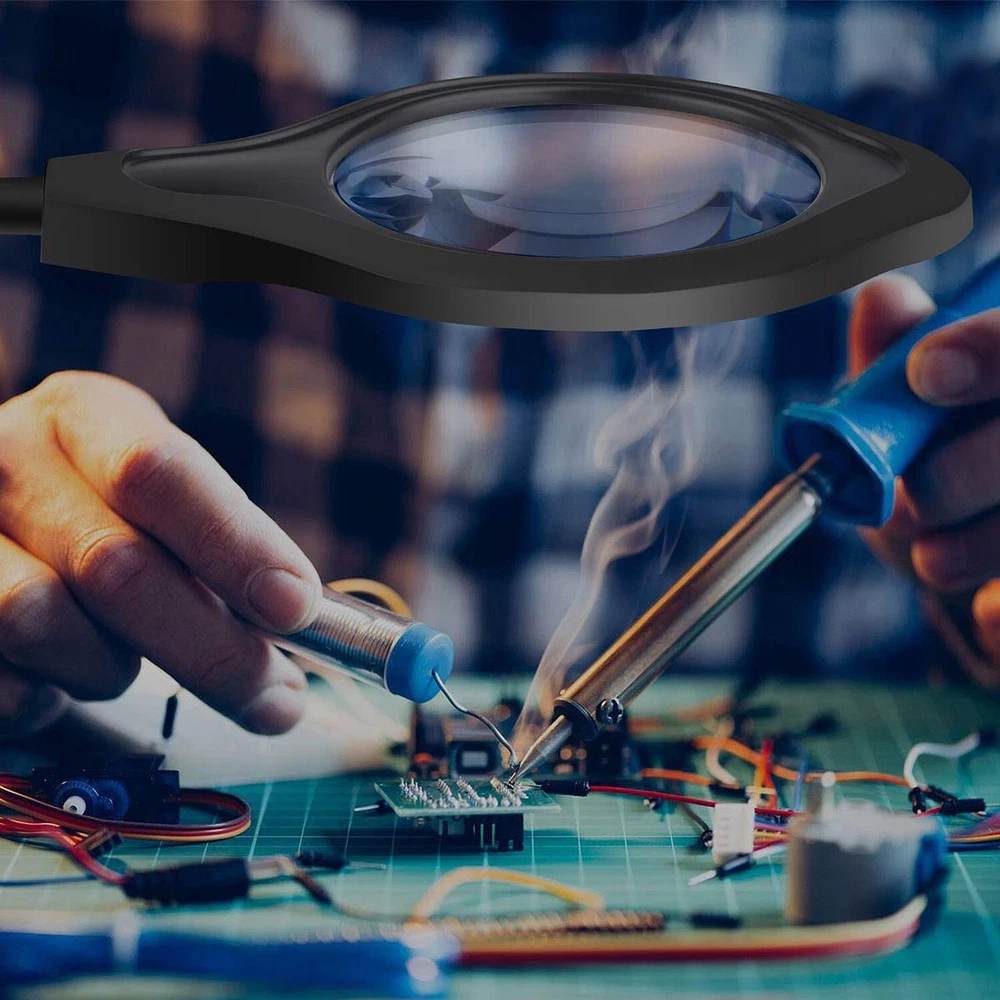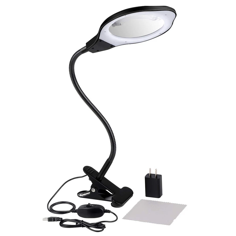 Bright Light Desk Gooseneck Magnifier Lamp with Metal Large Clamp, Magnifying Glass with Adjustable Light for Daily Hobbies Repairing, Reading, Crafts Product Details Brand: Dylviw Color: White, Metallic, Black Batteries Required?: No Lens Material: Glass Magnification Strength: 2 x Brand: Dylviw Color: White, Metallic, Black Batteries Required?: No Lens Material: Glass Magnification Strength: 2 x Handle Material: Metal Manufacturer: Dylviw UPC: 669665422758 Item Weight: 1.19 pounds Product Dimensions: 11.2 x 5.2 x 3.9 inches Item model number: Magnifier With Light Material Type: Metal Manufacturer Part Number: Magnifier With Light Date First Available: April 24, 2019 With Big Diameter Dylviw Gooseneck Clamp Magnifier Lamp, you can have both hands free when working with circuit boards, electronic component soldering repairs, reading, sewing, needle point, diamond painting, model making, crafting, etc. Magnifying to 2X(200%), it is easy to adjust to get the most comfortable and clearest vision for eyes. Magnifying size will vary in a small range when the distance between magnifier and objects change. Brightness Adjustable Switch, Easy Operation. 18pcs energy-efficient bright LED lights, 2 brightness levels, just plug in then press the button to choose. Metallic Goose Neck, Large clamp. Flexible neck allows for lots of positioning and mounting options, large clamp can hold onto desk or similar objects firmly. If you are not satisfied for any reason, please let us know and we will make things right.