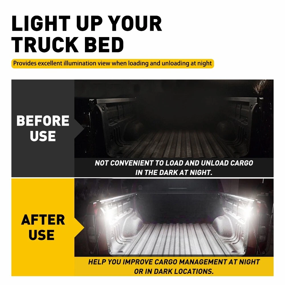 1. These LED truck lights are a fantastic upgrade! The bright white light is perfect for nighttime cargo checks, and the installation was a breeze—just plug and play. They feel sturdy, with great waterproofing, and fit my F-150 perfectly. Highly recommend for better visibility and a sleek look!