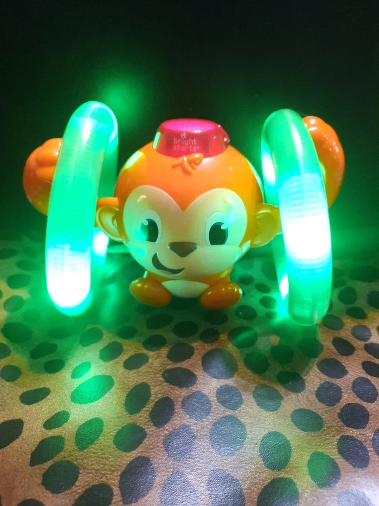 Bright Starts Roll & Glow Monkey Toy with Lights and Melodies, Ages 6 months +