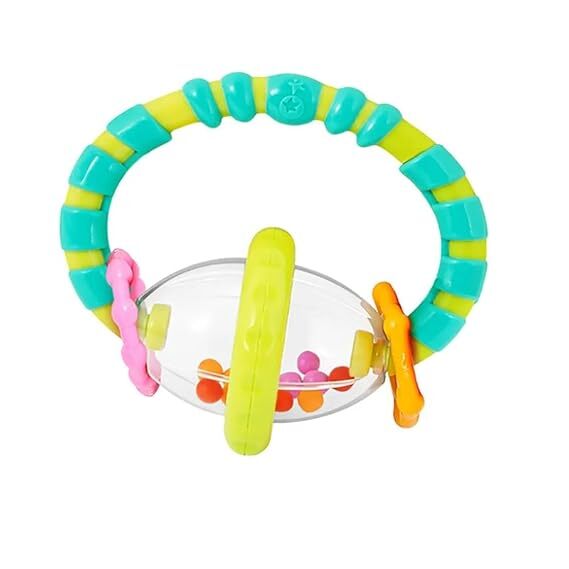 Bright Starts Grab & Spin Baby Rattle & BPA-Free Teether Toy, Ages 3 Months+ Item Description About this item Shake and spin for silly fun Textured handle is made for teething relief Easy for little hands to hold Great for on-the-go › See more product details Time to shake things up at playtime! With the Grab & Spin Rattle toy by Bright Starts, your little noisemaker will spend hours maneuvering this take-along toy. Made for tiny fingers, the keyring shape is easy to grab… and safe for teething too! The textured handle features a ribbed design to help soothe sore gums, and the two sliding pieces help reach those tough teething spots. Your baby will love the spinning rattle chamber and all the fun sounds it makes. Sometimes the littlest toys bring out the biggest smiles. Payment Fast and Free Shipping Shipping safe payment via ebay . Return 30 Day's returns
