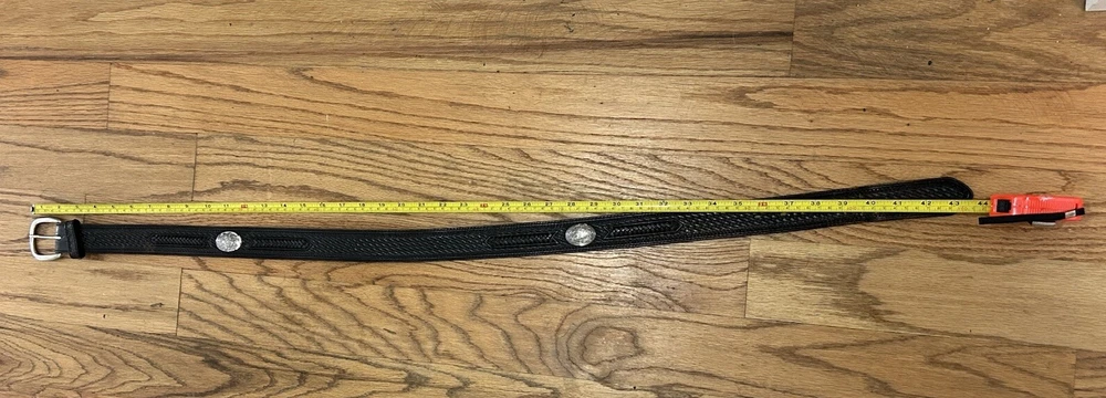 Accessorize with sophistication using the Brighton Black Leather Braided Belt, a timeless addition to any wardrobe. This belt, crafted for women and boasting a size 38", features a classic 1" width that pairs effortlessly with a variety of outfits, whether it's for a casual day out or a more formal occasion. Braided leather accents. This is an older belt does show wear on silver.