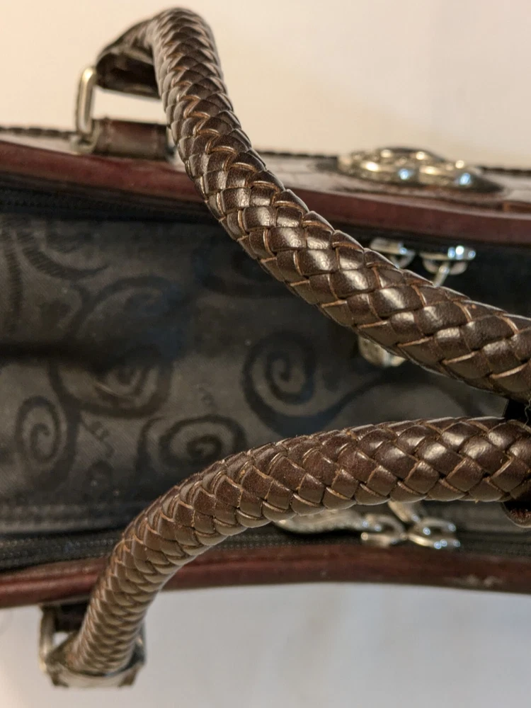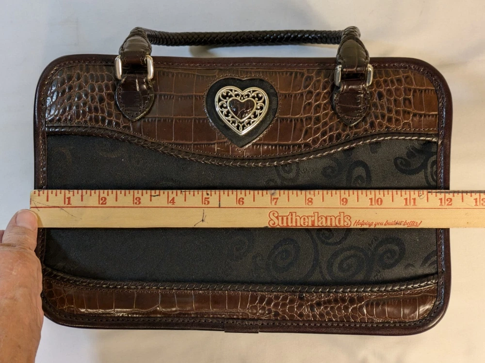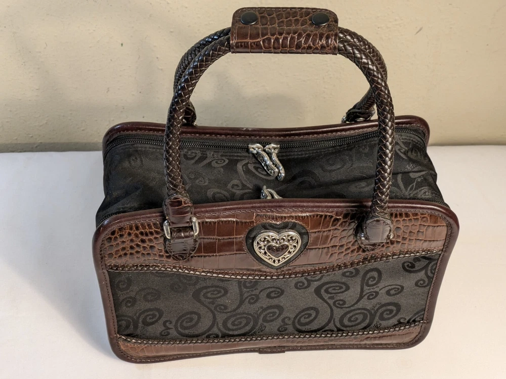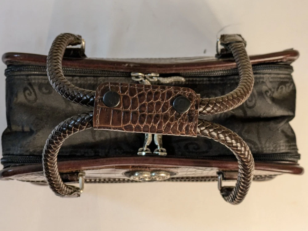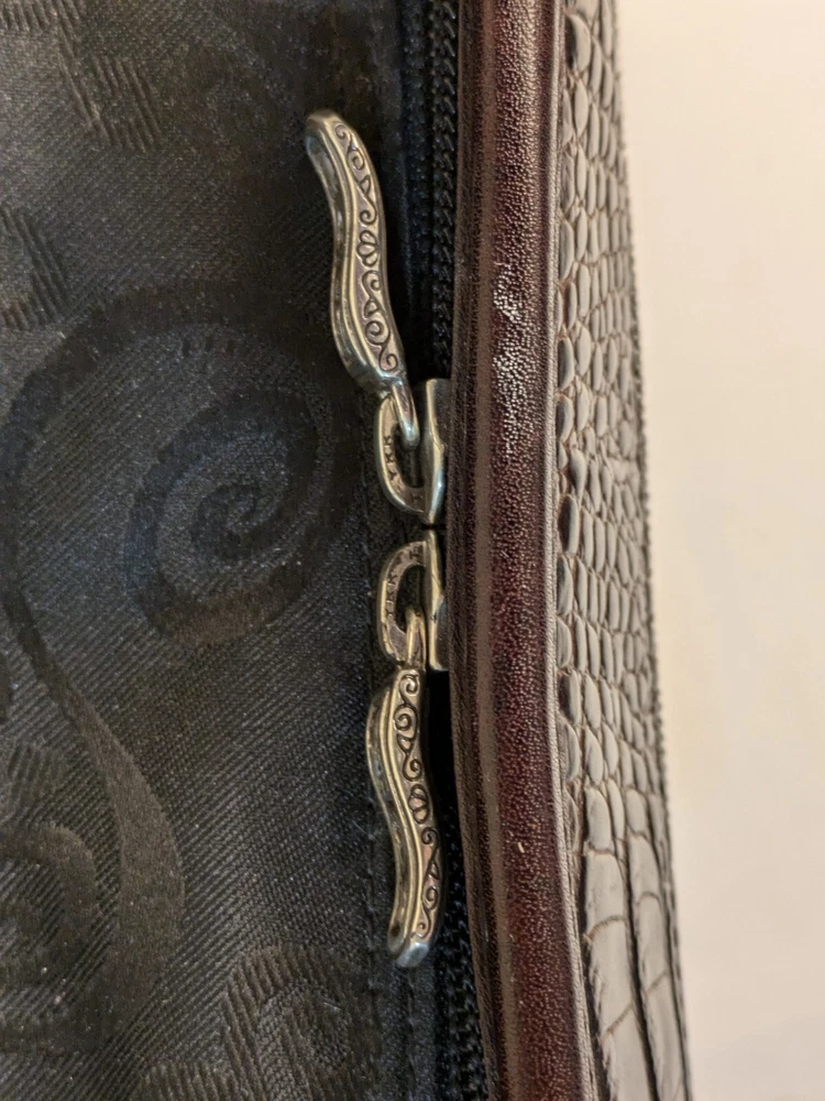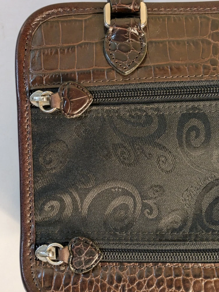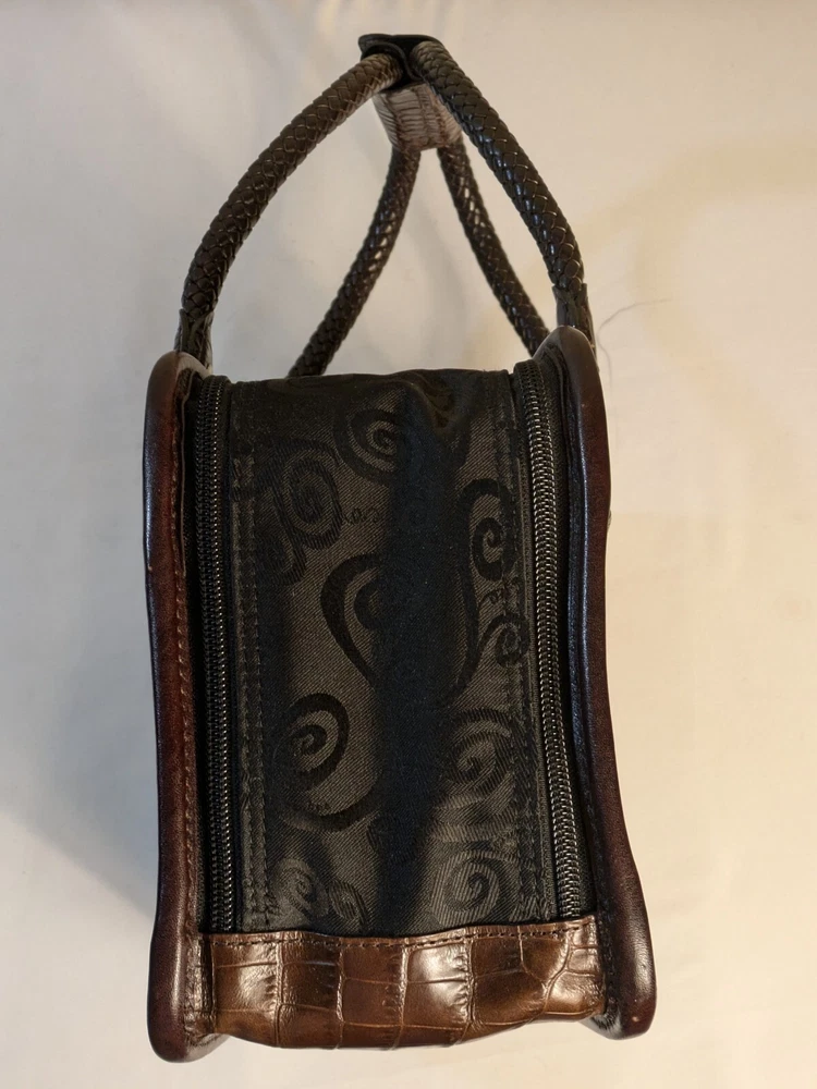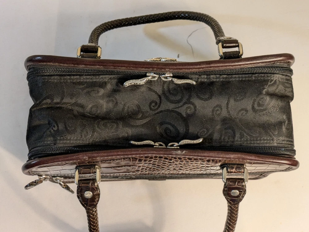 Brighton Make Up Travel Toiletry Leather Brown Croc & Black Bag 12x8x5 BRAND NEW