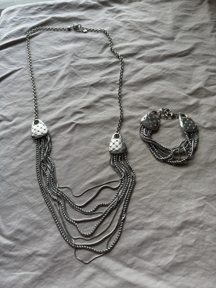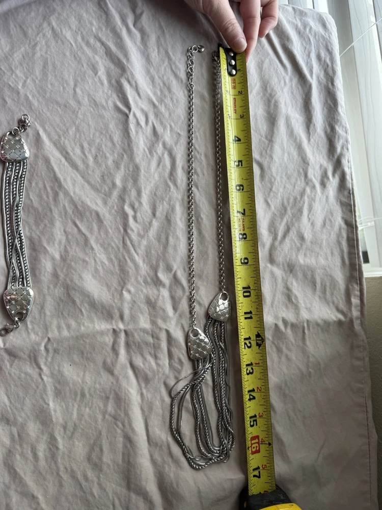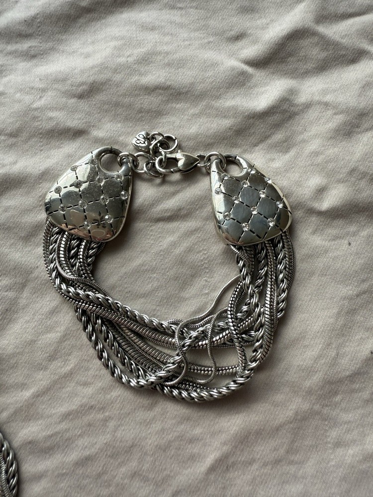 The Brighton Matching Necklace and Bracelet Set is a beautiful silver-plated jewelry set that includes a necklace and bracelet. The set is perfect for special occasions like Mother's Day, anniversaries, or birthdays. The pieces feature an adjustable design and are branded by the reputable brand Brighton. This set is a lovely gift that conveys love and appreciation to someone special.