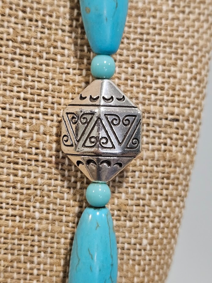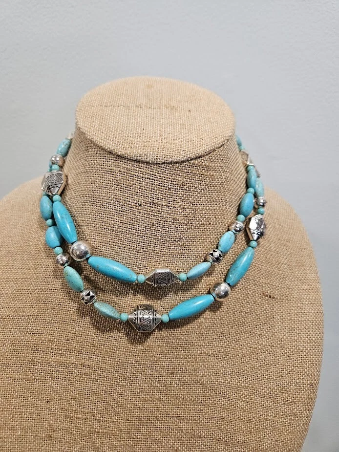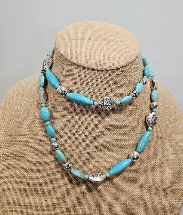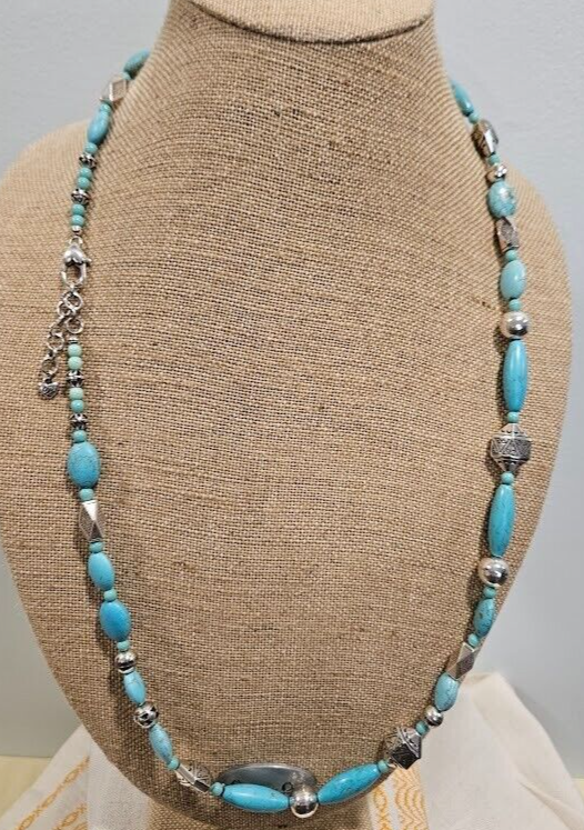 Brighton Mohave necklace. Turquoise-dyed semi-precious howlite beads, Silver plated Lobster Claw closure. Ships from a smoke free home! Please see all photos for exact item condition. Care for Brighton jewelry: gently wipe them clean with a soft cloth and mild soap solution. Avoid exposing your piece to harsh chemicals or abrasive materials, as these can damage the finish . Thank you for checking out my store! All items are shipped within 1 or 2 business days. Make a bundle to save on shipping cost.