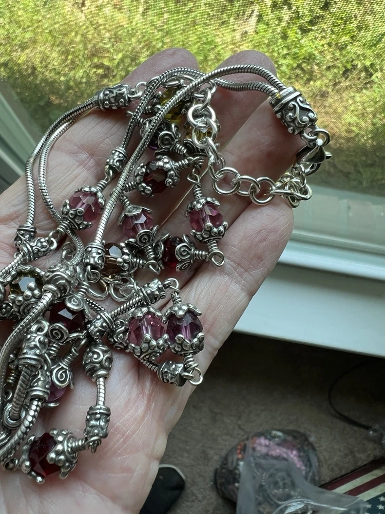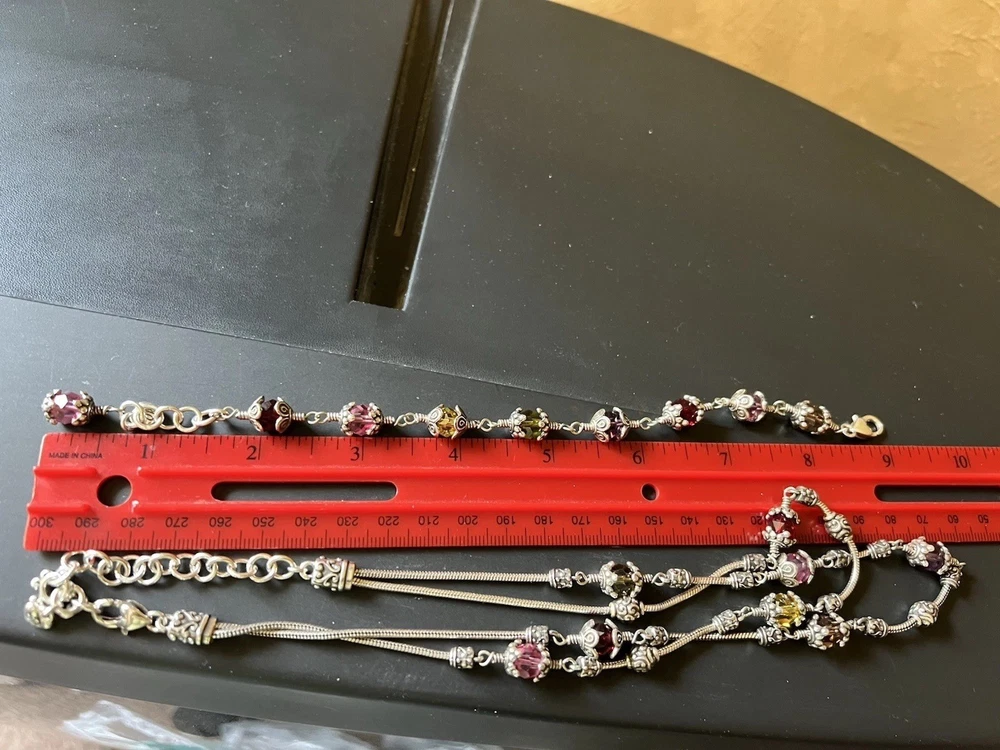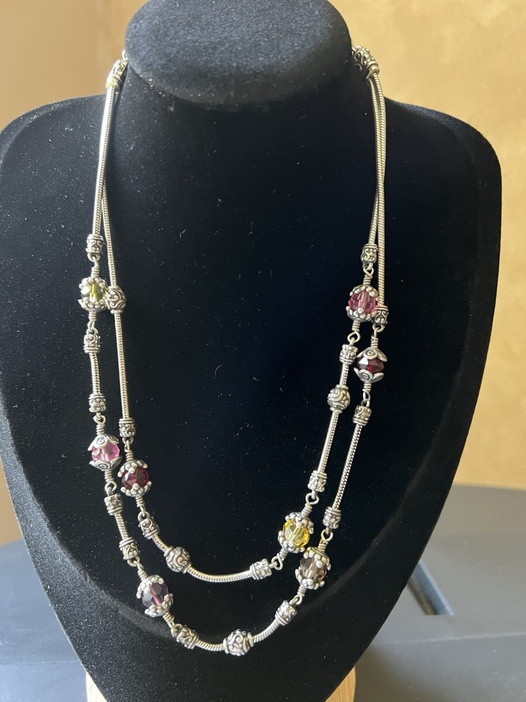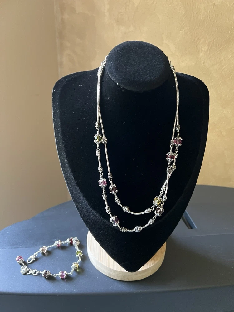 Gorgeous scroll design Brighton necklace and bracelet set. The glass beads are red, yellow and pink faceted ornate design. Necklace with matching bracelet. Excellent condition