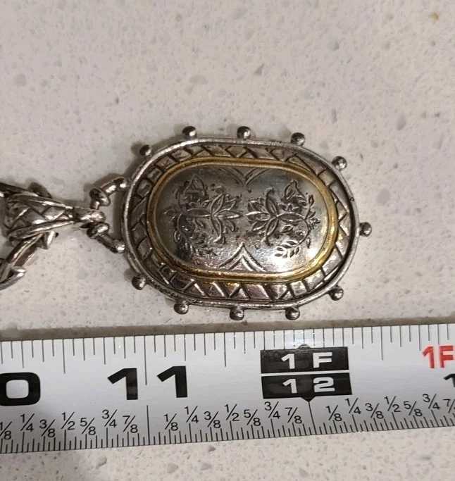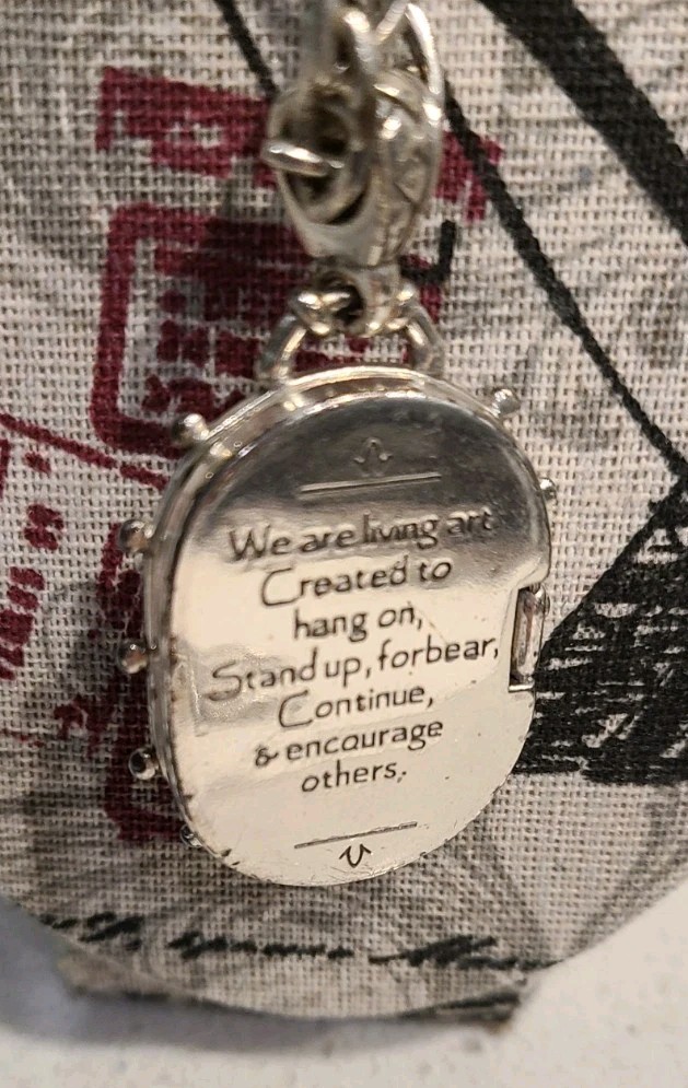 The Brighton Silver Tone Inspirational Quote Locket Pendant Necklace features a beautifully crafted pendant adorned with an inspirational quote by Maya Angelou. This necklace is a stylish and meaningful piece of jewelry that adds a touch of inspiration to any outfit. Perfect for anyone looking to add a touch of positivity and style to their ensemble. add a photo inside of the locker and enjoy! See photos for more.