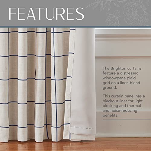 Brighton Windowpane Plaid Blackout Window Curtain, Living 52 in x 95 in Indigo
