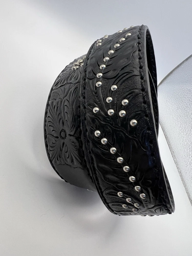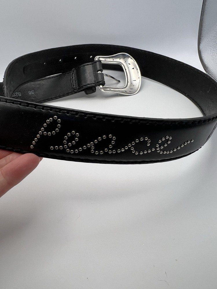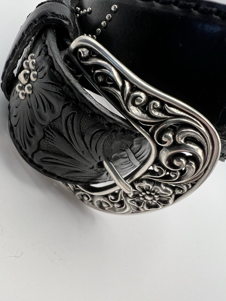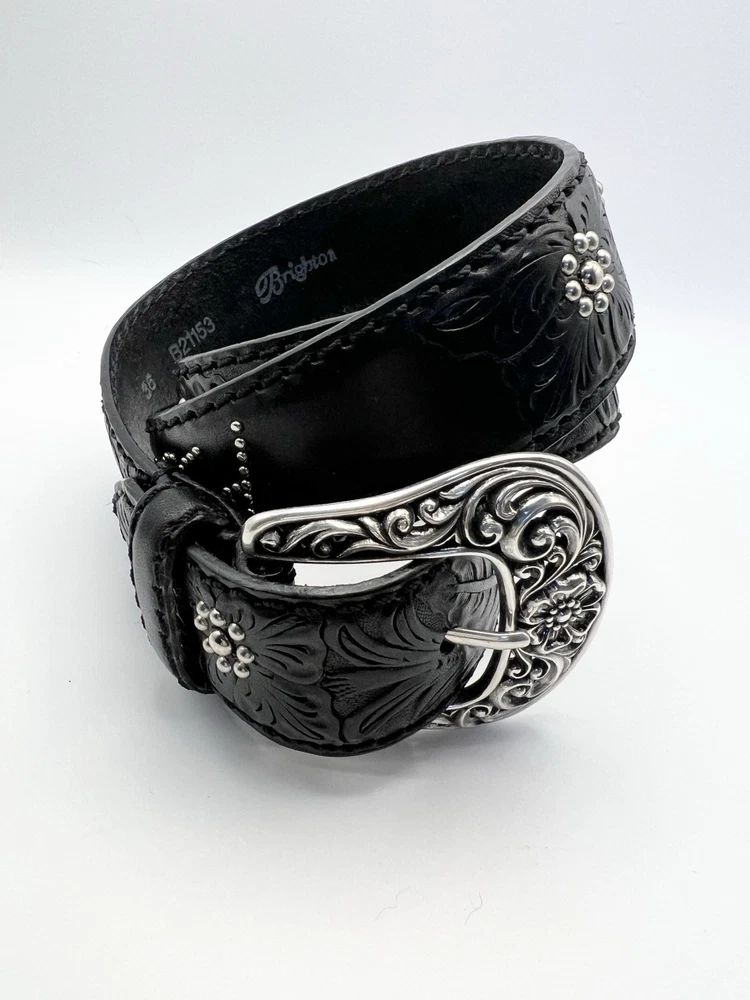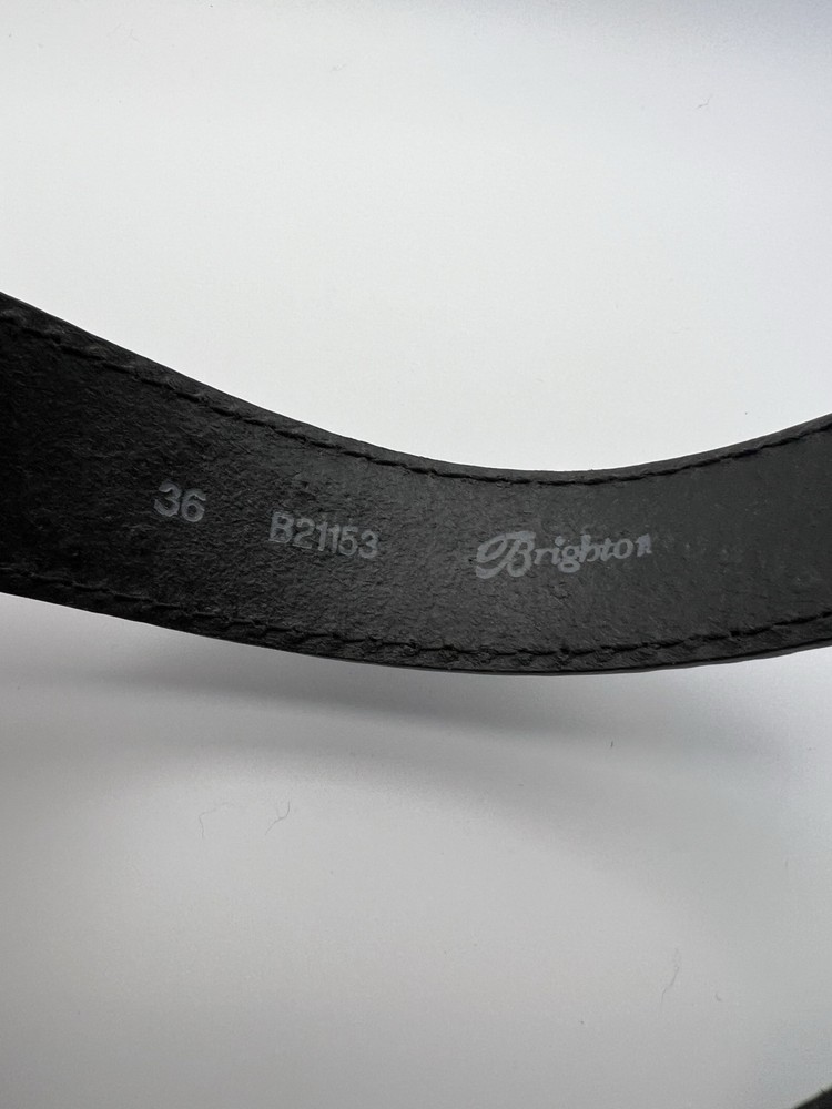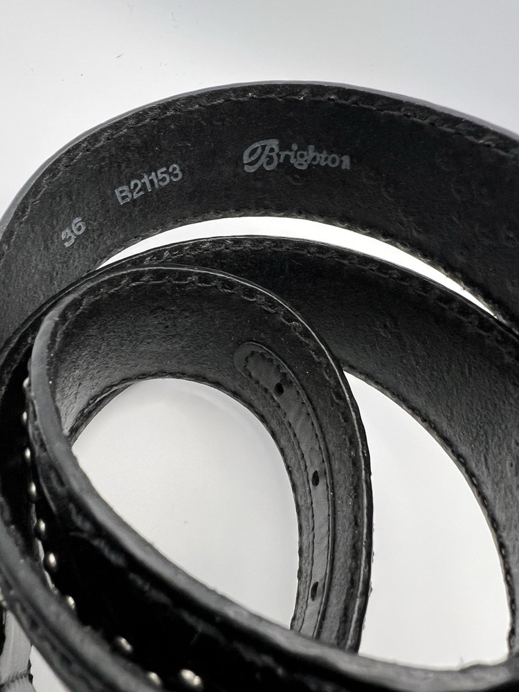 Like new condition Brighton Leather Belt Womens Sz 36 black B21153 Spellout Peace Tooled Embellished