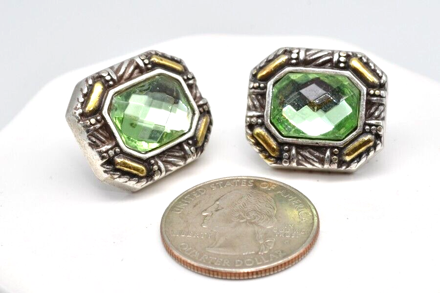 Brighton Earrings Pierced Stud Post Two Tone Green Stones Valentine's Day Beautiful. Backs or stoppers have been replaced. Would make a great Valentine's Day gift. Great gift for her: birthday, anniversary, or gift for yourself. Since earrings are pre-owned sanitize before wearing. As with any jewelry it is a choking hazard for small children. Thank you for viewing this item. Please check out my other listings on Ebay at Kentucky Fun Treasures! I will be happy to combine shipping whenever possible. Thanks!