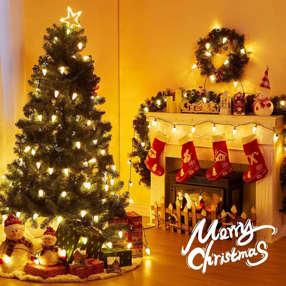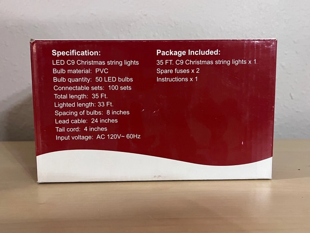 - Brightown 50 Warm White Faceted C9 LED Christmas Lights Super Bright BRAND NEW - BRAND NEW IN ORIGINAL PACKAGING - SHIPS OUT IMMEDIATELY - REPUTABLE SELLER : CHECK MY FEEDBACK!!! Please reference pictures for description From smoke free / pet free home YOU PICK THE SHIPPING OPTION. GROUND ADVANTAGE IS THE CHEAPEST IF YOU REQUIRE EXPEDITED SHIPPING OR EXTRA PACKAGING PLEASE SELECT ONE OF THE LISTED EXPEDITED SHIPPING SERVICES. THANK YOU! About this item 【 C9 LED Christmas String Lights 】- The plug-in C9 green wire lights are 33 feet long with 50 bright strawberry-shaped LEDs. The heavy-duty wiring and bigger-sized LED bulbs add a cheerful and romantic touch to your indoor/outdoor space 【 Brilliantly Bright Glow 】- These Christmas light strings feature large, faceted C9 bulbs made from durable polycarbonate, offering good brightness, colour saturation, ruggedness and reliability. Built-in SMD LED creates vivid lighting effects; the diamond facet hole design prevents stagnant water. Bulbs with vibrant colours will never fade, chip or crack 【 Connectable Up to 50 Sets 】- You can connect up to 50 sets of these C9 LED Christmas string lights end to end, which is incredibly convenient for decorating broad areas or a sizeable outdoor object - such as your roofline or an oversized tree 【 High-quality Construction 】- Bulbs are removable and replaceable. And if one bulb burns out, the others stay lit (saving you from having a half-lit strand). 2 spare bulbs and two fuses for replacement are included to ensure steady and fantastic lighting. You will find them extremely bright and beautiful, lighting up your backyard, patio, roof, etc. 【 Built-in Clips for Hanging 】- A hook on the top of each bulb socket so you can hang it anywhere you want. It is suitable for indoors and an excellent decoration for balconies, patios, gardens, porches, pergolas, decks, tents, parties, city rooftops, weddings, birthdays, cafes, restaurants, etc.
