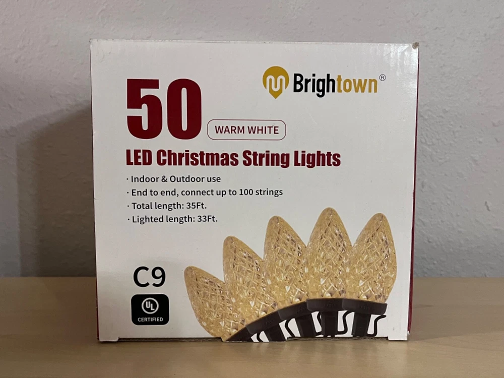 Brightown 50 Warm White Faceted C9 LED Christmas Lights Super Bright BRAND NEW