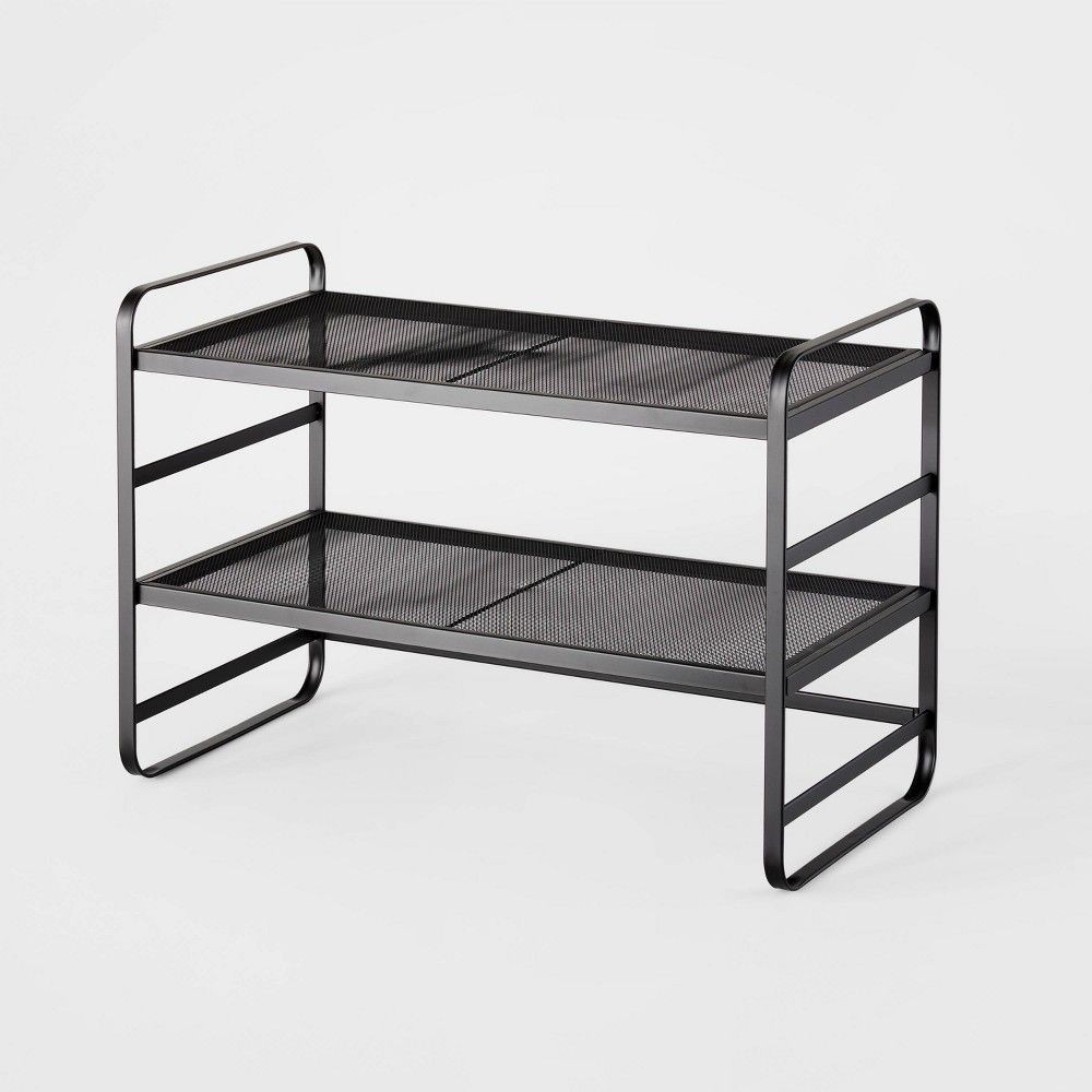 The Brightroom Metal 2 Shelves Shoe Rack is a stylish and practical storage solution for organizing your shoes. This adjustable shoe rack features a modern black mesh design that is easy to care for and includes two compartments for displaying your footwear. Made of durable metal, this free-standing rack is perfect for any home and requires assembly. With its compact style and adjustable features, this shoe rack is a versatile addition to any living space.
