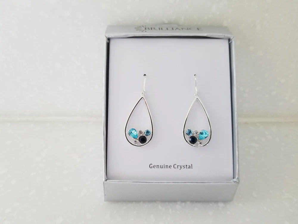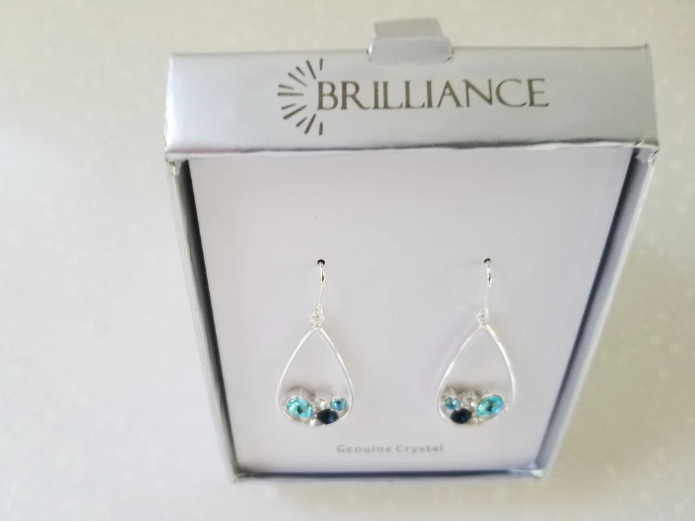 Brilliance Fine Silver Plated Genuine Crystal Dangling Earrings. Brand new in box. Please view photos.