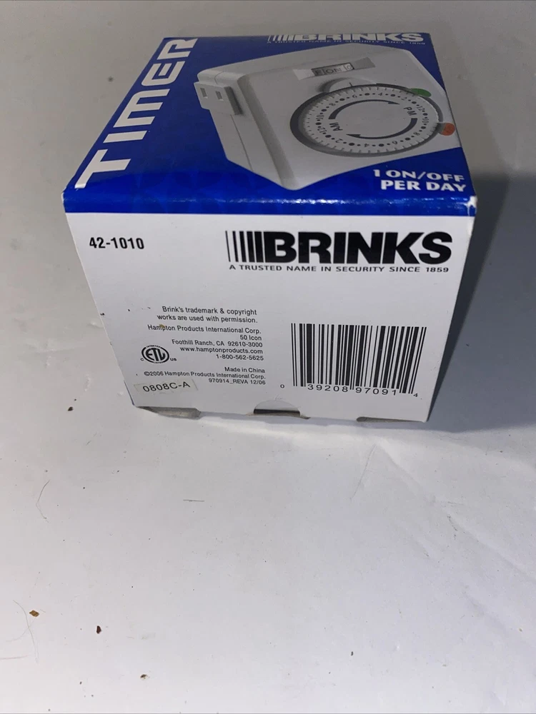 This Brinks Security Mechanical Timer 42-1010 is a top-of-the-line product that will meet all your needs. With its powerful 10A maximum amperage and AC current type, it can handle any outlet application with ease. The timer has a rotary switch style, dial control style, and a single way to operate. It runs on 101-120V voltage and has a plug type of B. The Brinks 42-1010 is a reliable product that will ensure your electrical outlet is safe and secure. Its application includes electrical switches and dimmers, and it comes with a number of ways of 1. This product is perfect for anyone looking for a durable and efficient electrical outlet timer.
