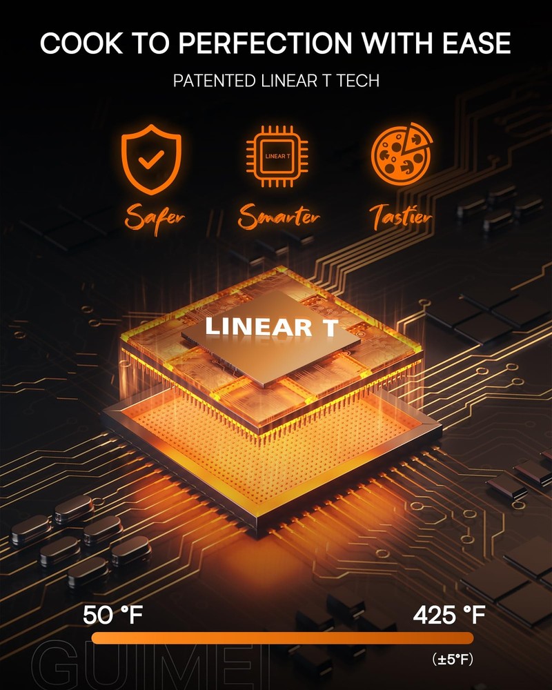 10-IN-1 FUNCTIONALITY & 100 PRE-PROGRAMMED MENU PRESETS – Brio provides versatile functionality: Air Fry, Rotisserie, Grill, Roast, Reheat, Broil, Defrost, Dehydrate, Bake, Keep Warm, Proof. It is also programmed with 100 pre-programmed menu presets and additional 50 memory slots where you can save and recall your own favorite recipes. Perfect for busy households on the go! LARGE CAPACITY FOR FAMILY SIZE - Features 4 rack positions and 7 cooking accessories, including Reversible Non-Stick Grill & Griddle, Rotisserie Basket & Skewer, Stainless-Steel Mesh Rack & Mesh Tray, Digital Temperature Probe, Drip Tray. The 15.5Qt large capacity makes cooking delicious meals for the entire family now easy. It’s the perfect combination of large capacity and function versatility. POWERFUL CONVECTION FAN & SMOKELESS – Brio is an air fryer oven with a powerful 5-inch convection fan. It’s top mounted and promotes unrivaled cyclonic convection circulation for fast, even, extra-crispy cooking while remaining smokeless, saving you precious time in the kitchen. MAKE PRECISE ADJUSTMENTS ON-THE-FLY & DIGITAL CONTROLS - Set cook temperatures from 50°F to 425°F adjustable in precise 5°F increments. Control time and temperature any time in the cooking process that never turns off while cooking, unlike the primitive methods that regulate temperature by turning the heater on and off. Want a hotter temperature or need to cook it longer? Simply adjust on-the-fly any time. Brio’s intuitive digital controls are easy to operate. DELICIOUS ROTISSERIE & GRILL – Self-basting rotation browns the whole chicken sealing in the flavors while unwanted fats drip away. You can also tumble fry vegetables or French fries to perfection. Get inspired & create your own masterpieces.
