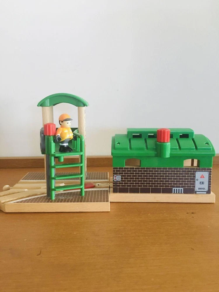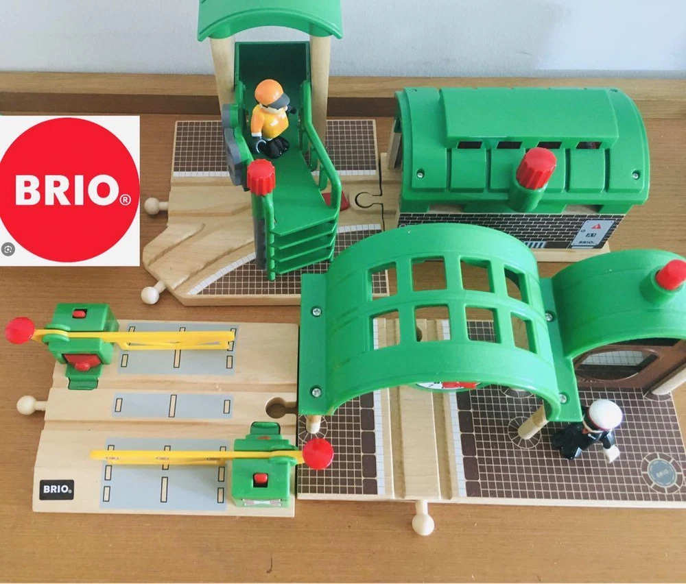 HomeBrio BRIO Scenery Parts 4 Piece Set Signal Station Station Railroad Crossing Gar