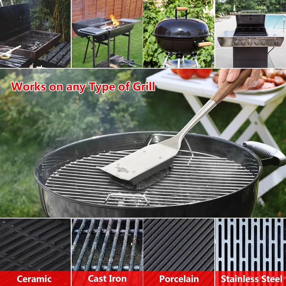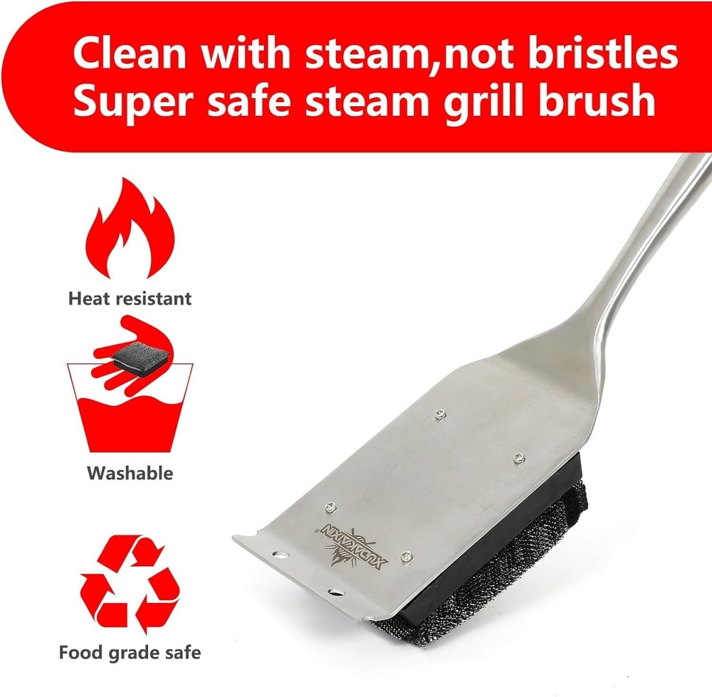 -Brand New - Never Used - Questions: Feel free to ask any Questions - BOX: Never Opened - DESCRIPTION:ใ€๐’๐š๐Ÿ๐ž ๐š๐ง๐ ๐„๐Ÿ๐Ÿ๐ข๐œ๐ข๐ž๐ง๐ญใ€‘With a bristle-free grill brush. you donโ€™t have to worry about dangerous wire bristles found on most common barbeque brush products. Water activated design cleans with the power of steam thanks to a core made of XUDAKAIXIN exclusive foam.(๐๐š๐ญ๐ž๐ง๐ญ๐ž๐ ๐ƒ๐ž๐ฌ๐ข๐ ๐ง)Cleaning your grill only takes about five seconds * ใ€๐ƒ๐ฎ๐ซ๐š๐›๐ฅ๐ž ๐š๐ง๐ ๐’๐ญ๐ฎ๐ซ๐๐ฒใ€‘Not only have weโ€™ve tested this safe bbq brush on numerous gas, charcoal, pellet, and flat-top grills; The long stainless steel handle never bends or breaks, keeping you away from heat sources. It truly is the world's safest grill brush * ใ€๐–๐จ๐ซ๐ค๐ฌ ๐จ๐ง ๐š๐ง๐ฒ ๐“๐ฒ๐ฉ๐ž ๐จ๐Ÿ ๐†๐ซ๐ข๐ฅ๐ฅใ€‘The Grill Brush is safe to use on any type of grill, including charcoal, gas, porcelain, ceramic, cast iron or stainless steel grills. * ใ€๐‘๐ž๐ฉ๐ฅ๐š๐œ๐ž๐š๐›๐ฅ๐ž ๐†๐ซ๐ข๐ฅ๐ฅ ๐๐ซ๐ฎ๐ฌ๐ก ๐‡๐ž๐š๐ ใ€‘This no wire grill brush lasts longer than grilling season, but just in case you want to freshen up your grill tools, we also make a replacement brush head. - OFFERS: Reasonable offers are considered, LOWBALLERS, Best price and Lowest askers will be ignored - all sales final/no refunds/ no exchanges/ no returns - Disclaimer: I do not own the brand's trademarks, logos, pictures, or products posted. I do not intend to infringe on copyright. I find such content available on the internet. Contents are considered fair use. - XUDAKAIXIN Grill Brush Bristle Free.Steam Grill Brush for Water Activated Design.Durable and Unique Scraper Tools.Replaceable Scraper Cleaning Head,Grill Accessories Gift for Men/Dad