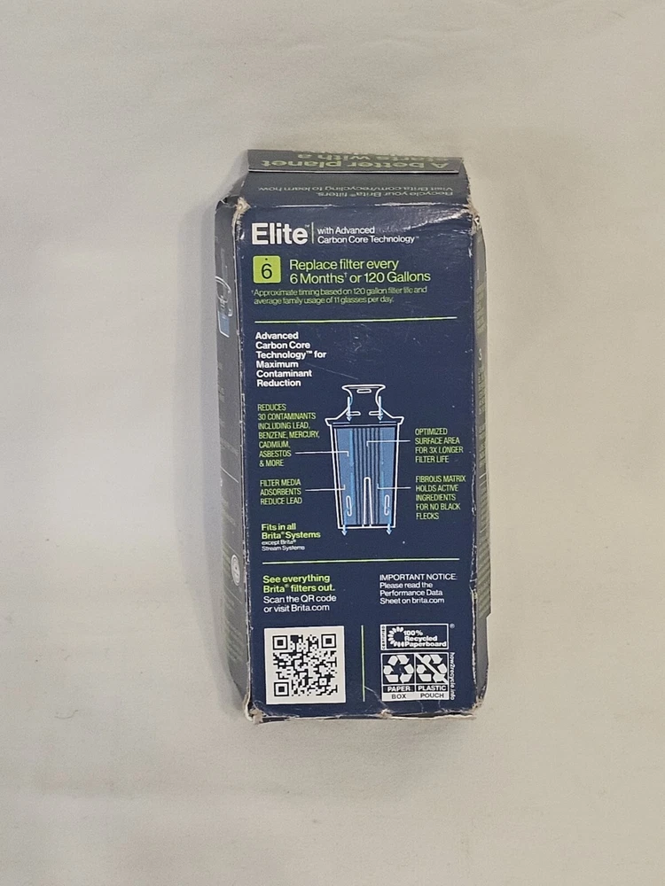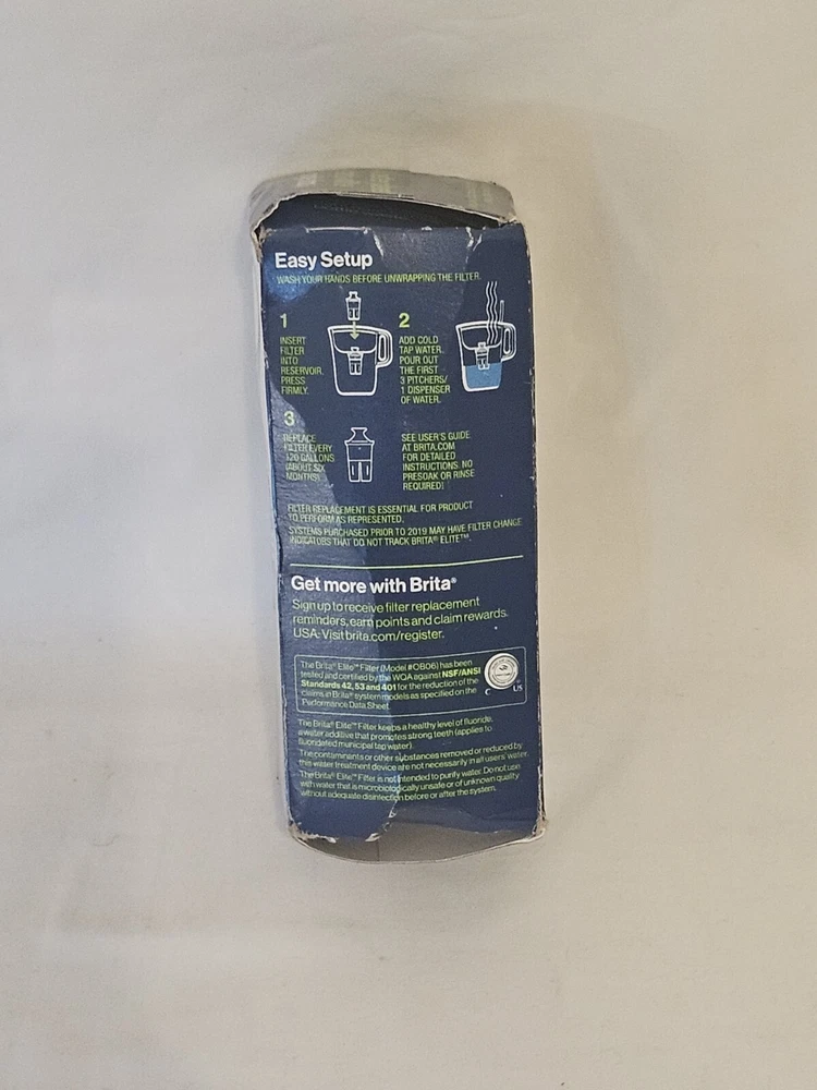 New from SamsMadDeals G enuine Brita Elite Replacement Water Filter for Pitchers and Dispensers CONDITION: Box is factory sealed but has been roughly handled. Contains 1 filter. FREE DOMESTIC SHIPPING!! IN THE USA The photos listed are of the exact items you will receive. Enjoy and check out our other auctions!! SHIPPING, INSURANCE, AND PAYMENT INSIDE THE USA Shipping is FREE and will be shipped via USPS Mail with FREE DELIVERY CONFIRMATION or comparable method. OUTSIDE THE USA Please check the shipping rates for your country using the shipping calculator above. All international shipments will include insurance in the shipping price. International Buyers - Please Note: Import duties, taxes, and charges are not included in the item price or shipping cost. These charges are the buyer's responsibility. Please check with your country's customs office to determine what these additional costs will be prior to bidding or buying. POLICIES Payment must be received within 10 days of close of auction. Positive feedback will be left once payment is received. Negative feedback will be left for non paying bidders. All items sold are sold As-Is unless otherwise specified. Please see our Trademark and Authenticity and Return Policy sections for more information. TRADEMARKS AND AUTHENTICITY Attention VeRO members: We're not affiliated with or endorsed by the companies mentioned in this listing. All trademarks and copyrights are acknowledged, they are only used for informative description of the items offered for sale. All items are authentic as evidenced in photos, legally acquired and owned, and hence covered under First Sale Doctrine. Unlawful VeRO removal of this listing will constitute perjury and result in legal action. All names that are used in our descriptions are registered trademarks of their respective companies. As per Ebay guidelines, every item that is sold is GUARANTEED AUTHENTIC. I stake my reputation on the line when it comes to the products I list. If on the very slim chance that an item is listed by us which is found not to be authentic by the buyer, that item can be returned to us, shipping included, provided that their is documentation from a known authority stating that the item is indeed questioned. For more information on our AUTHENTICITY GUARANTEE, please contact us. RETURN POLICY Returns will be accepted for the following reasons: 1. There is a question about the authenticity of an item, provided there is documentation stating the item is not as sold or listed. 2. The description of the item did not include information regarding a GROSS MISREPRESENTATION or MAJOR defect in the item. (Please be aware that Sams Mad Deals does its best to describe every aspect of each item we sell. Some items which may be considered USED or VINTAGE can be expected to have normal wear and tear, unless otherwise stated.) PLEASE NOTE: A return will not be granted for any other reason. If you have any particular questions regarding an item up for bid, please email us prior to purchase or bid so that any questions can be answered and an informed decision can be made . LEGAL NOTICE Sams Mad Deals warrantees and represents that the goods are as they are described in the above listing. Sams Mad Deals specifically disclaims any implied warranties of title, merchantability, fitness for a particular purpose and non-infringement. Sams Mad Deals entire liability under any circumstance is limited to the sales price of the relevant goods.