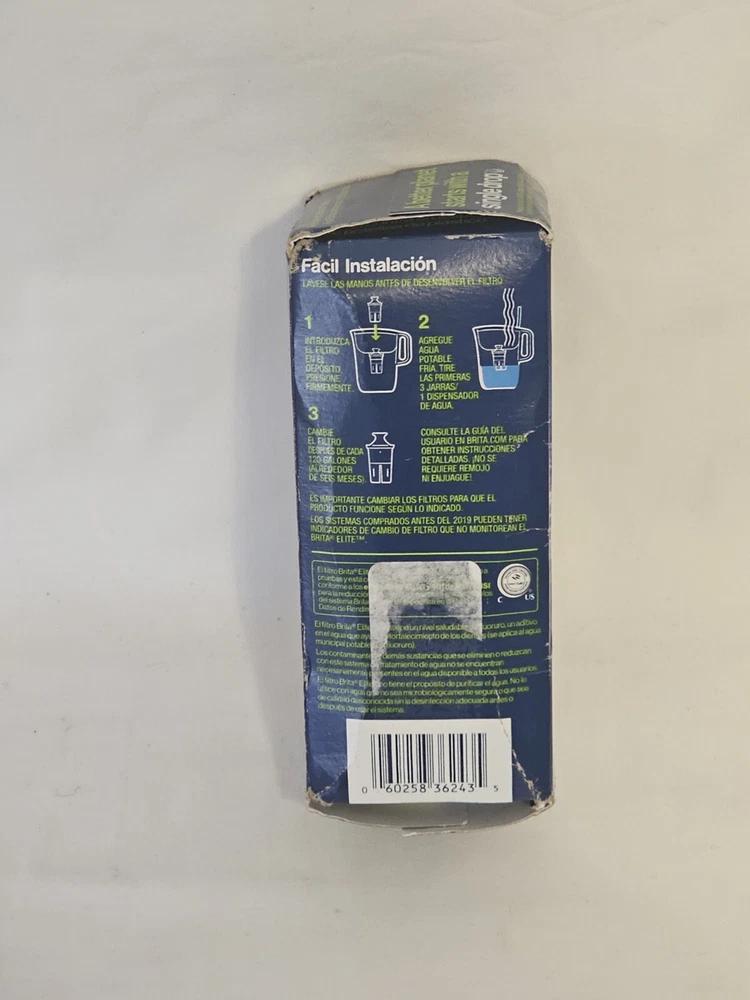 gtin13: 0060258362435 Number in Pack: 1 Contaminant Removal: Lead Type: Pitcher MPN: 36243 Compatible Brand: For Brita Brand: BRITA Model: 36243 Item Height: 4 in Color: Blue Suitable For: Commercial,Household UPC: 0060258362435 Compatible Model: Brita Material: Plastic