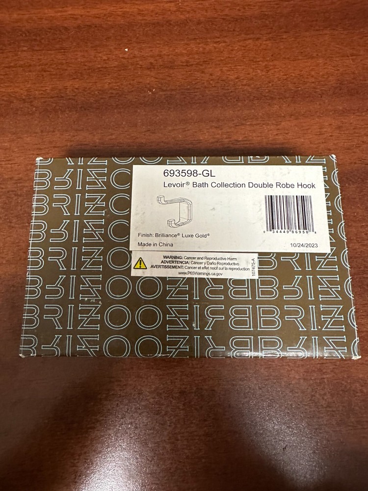 Brizo 693598-GL Levoir Double Robe Hook - Luxe Gold. Condition is New. Shipped with USPS Ground Advantage.