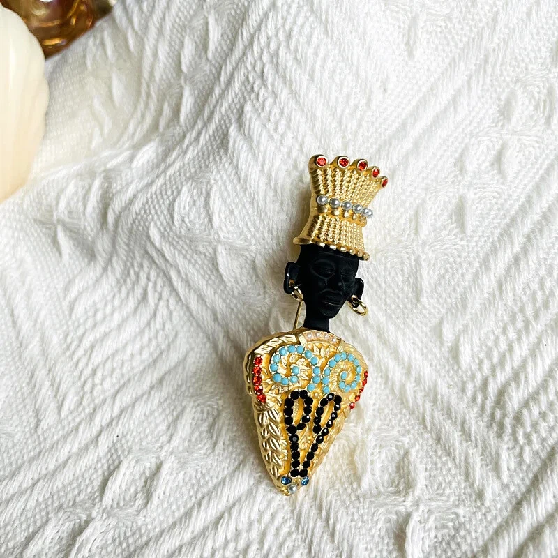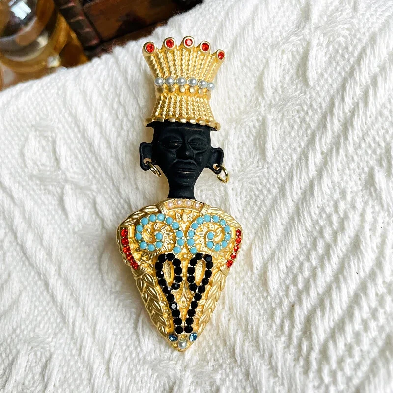 Broche Jefe Tribal Retrato Negro Exótico Rey Egipcio Prendedor Perla Medieval