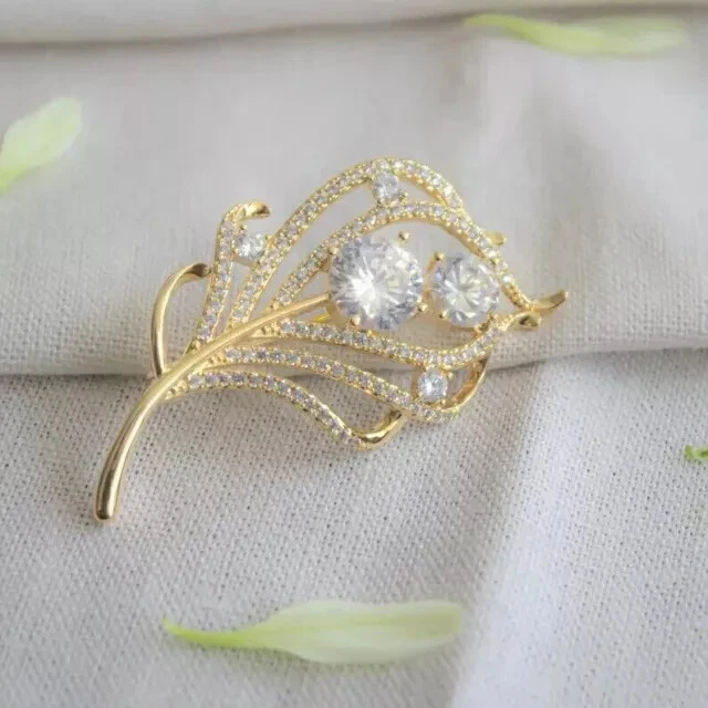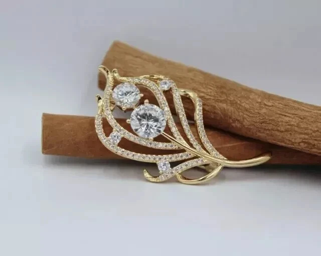 Broche prendedor elegante de diamantes simulados de corte redondo de 2,50 quilates enchapado en oro amarillo de 14 k