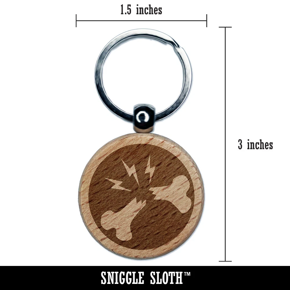 Broken Bone Injury Engraved Wood Round Keychain Tag Charm