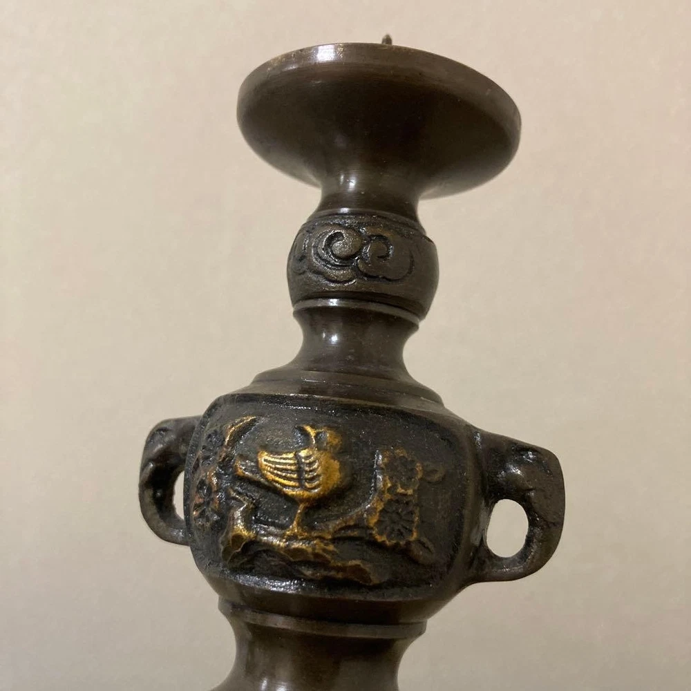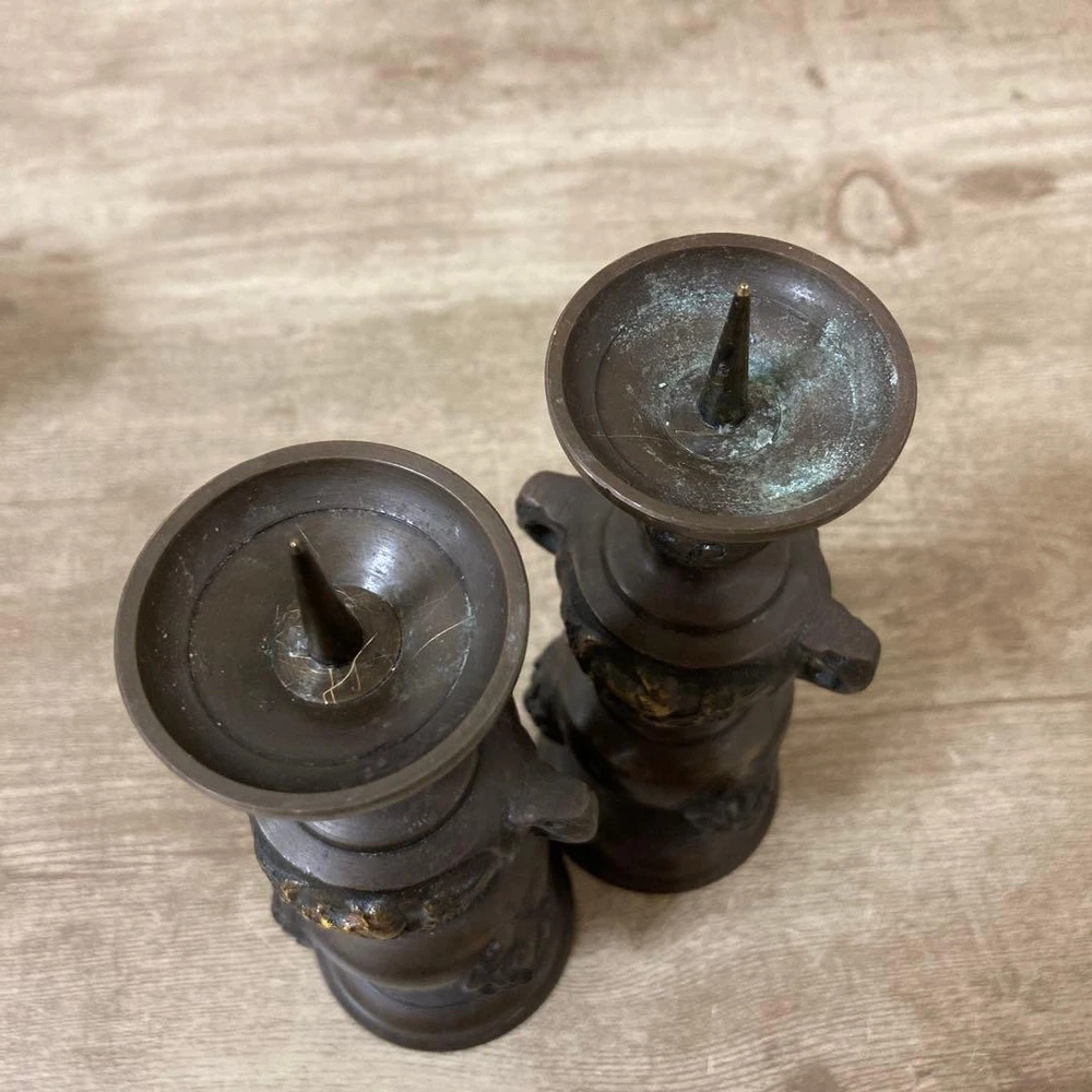 Vintage Japanese Bronze Candle Stand Pair CANDLESTICK Buddhism Ornament 6.1in Vintage Japanese Bronze Candle Stand Pair CANDLESTICK Buddhism Ornament 6.1in Description SIZE Height: 6.1 inch Width: Length: In most cases, accessories shown in the photos (such as stands or original storage boxes) are not included with the item. If any accessories are included, this will be clearly stated in the item title. For details regarding the item’s condition, please refer to the photos. If you have any questions or if the condition is difficult to judge from the images, feel free to contact us. We are happy to assist you and will respond kindly and promptly. Payment Supports managed payments Please pay within 5 days after auction is finished. About Us We ship worldwide. Feel free to ask any questions in English, German, French or Spanish. We are located in Japan. It's our pleasure to make you happy by proposing our recommend item. If you have any questions or request about items, please feel free to ask us. International Buyers - Please Note: -Import duties, taxes, and charges are not included in the item price or shipping charges. These charges are the buyer's responsibility. -Please check with your country's customs office to determine what these additional costs will be prior to bidding/buying. -These charges are normally collected by the delivering freight (shipping) company or when you pick the item up - do not confuse them for additional shipping charges. -We do not mark merchandise values below value or mark items as - gifts - The US and International government regulations prohibit such behavior. Thank you for your understanding.