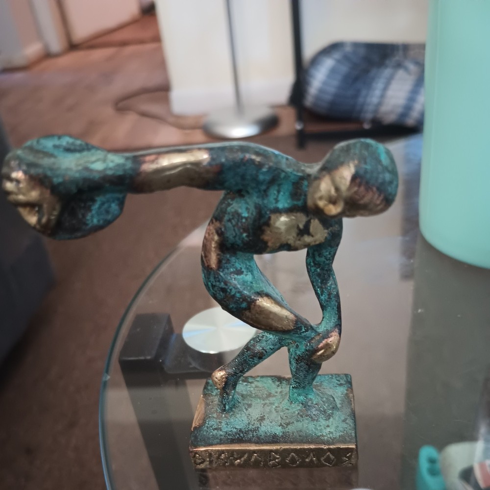 This stunning bronze Discobolus statue is a perfect miniature masterpiece! The 4-inch figure captures every muscle and movement with incredible detail, making it a striking display piece. It feels like holding a piece of ancient Greek history—ideal for collectors, history lovers, or anyone who appreciates classic art. The craftsmanship is superb, and it adds an elegant touch to any shelf or desk. A must-have for fans of Olympic heritage and timeless beauty!