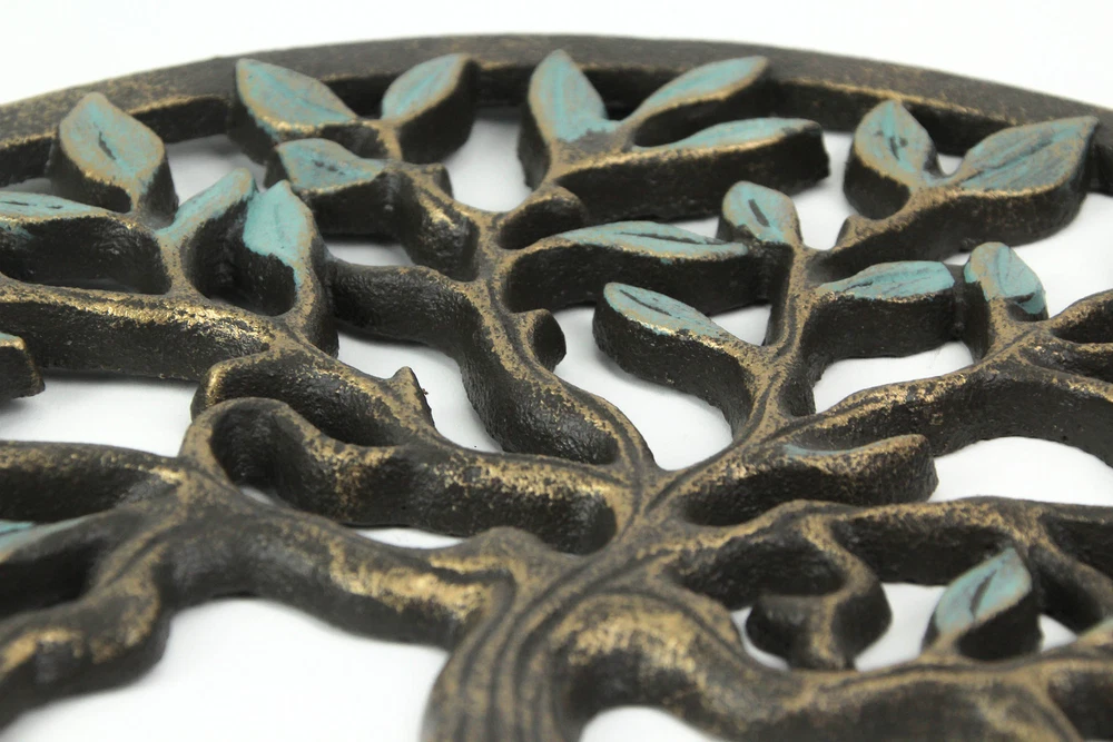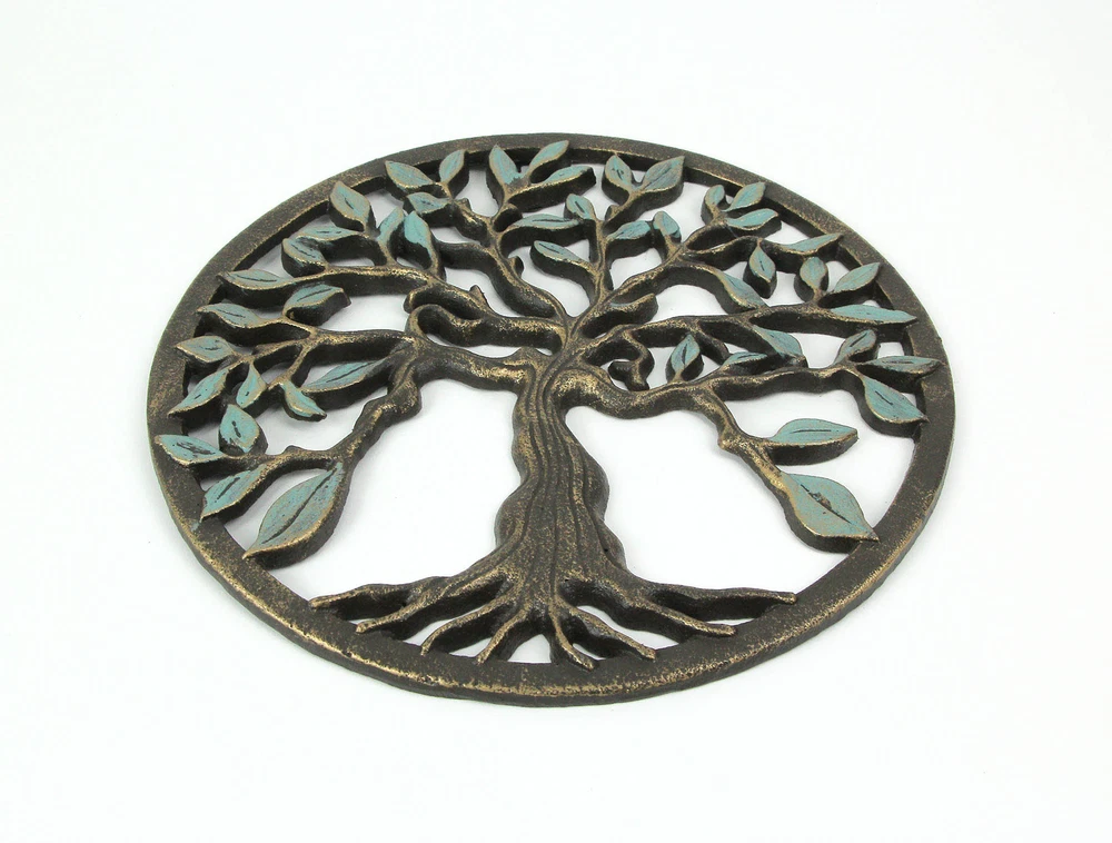 Perfect Dimensions - This Tree of Life wall sculpture measures 11.75 inches in diameter and 0.25 inches thick, ensuring a prominent and eye-catching presence on your wall. Long-lasting Quality - Crafted from high-quality cast iron, this decorative piece is designed to endure both indoor and outdoor environments, promising years of durability and beauty. Antique Charm - Adorned with a metallic bronze and verdigris coating, this sculpture exudes rustic elegance, adding a touch of vintage charm to your home or outdoor space. Our eBay Store About Us Add to Favorite Sellers Bronze and Green Finish Cast Iron Tree Of Life Wall Décor Sculpture 11.75 Inch Diameter - Elegant Nature Themed Decorative Plaque - Easy Install Perfect Dimensions - This Tree of Life wall sculpture measures 11.75 inches in diameter and 0.25 inches thick, ensuring a prominent and eye-catching presence on your wall. Long-lasting Quality - Crafted from high-quality cast iron, this decorative piece is designed to endure both indoor and outdoor environments, promising years of durability and beauty. Antique Charm - Adorned with a metallic bronze and verdigris coating, this sculpture exudes rustic elegance, adding a touch of vintage charm to your home or outdoor space. Effortless Installation - Featuring a convenient keyhole hanger on the back, this wall art is incredibly easy to mount. A single nail or screw is all you need to showcase this exquisite piece. Meaningful Gift - Whether for yourself or your loved ones, this Tree of Life sculpture makes a thoughtful and meaningful gift. Its timeless design and enduring quality ensure it becomes a cherished addition to any space, making it a wonderful present for friends and family. Transform your space with our stunning Tree of Life decorative wall hanging, crafted from durable cast iron. This exquisite piece features intricate details, including verdigris leaves, enhancing its beauty. With a weather-resistant bronze finish, it radiates elegance and tranquility. Measuring 11.75 inches in diameter and 0.25 inches thick, this artful sculpture adds a touch of nature's essence to your home. Its versatile design allows it to seamlessly blend into various settings – from bedrooms and hallways to porches and patios. The included keyhole hanger ensures easy mounting with a single nail or screw (not included), simplifying the installation process. This Tree of Life wall decor is not just an art piece; it's a symbol of life and harmony, making it a meaningful addition to your home. Its unique design captures the eye and sparks conversation, making it an excellent focal point for any room. It's not only an expression of your personal style but also a thoughtful gift choice for friends and family. Elevate your home decor with this decorative masterpiece, and let the Tree of Life sculpture bring an aura of serenity and natural beauty to your living space. Enjoy the timeless charm and meaningful symbolism that this artful creation exudes, enriching your surroundings with its grace and allure. Product Details Color Bronze Height 11.75 Length 11.75 Weight 3.8 LB