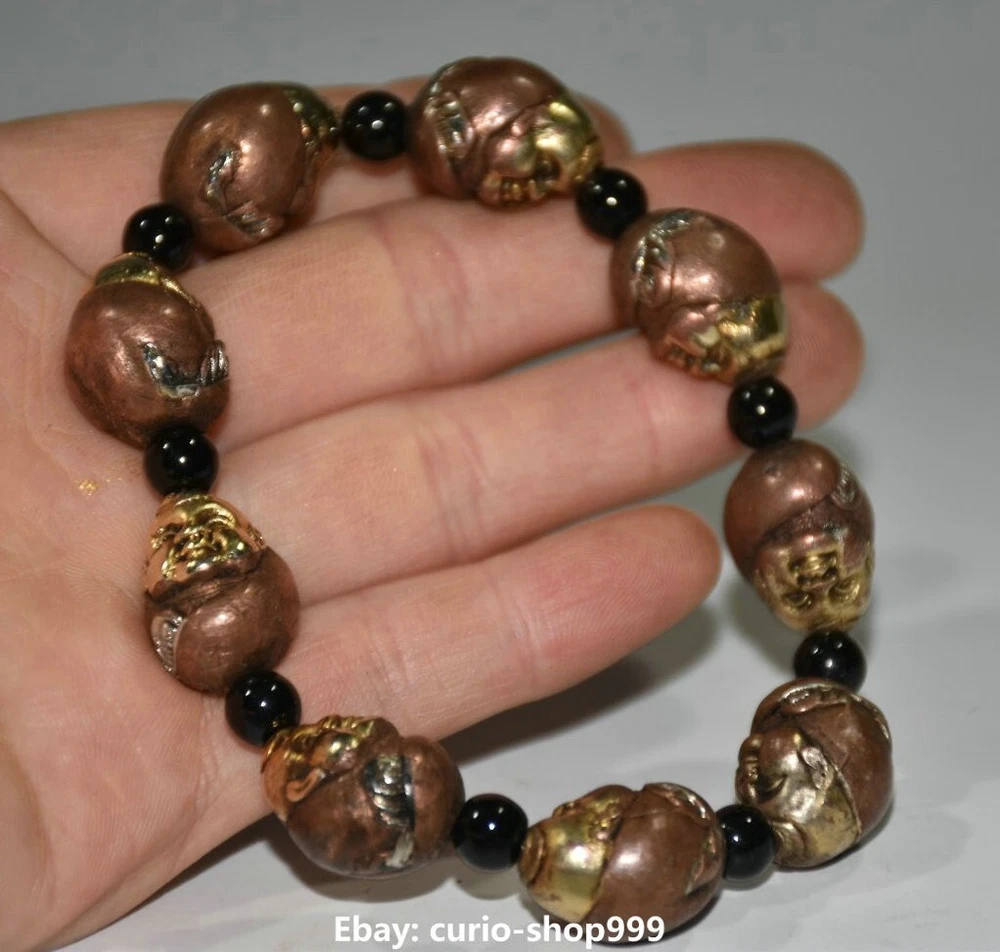 **** Welcome to our antique & Collectable Shop : Porcelain**** Description: Here is Old China Bronze Gilt Fengshui Happy Maitreya Buddha Amulet Bracelet Hand Chain .It is in good condition, and was created by skilled craftsmen in traditional style with fine handcrafts.This is a great piece of valuable collection, a valuable personal alter or a very good present. the handwork is very fine with incredible detailling. Don't miss out this chance to get it.Wish you good luck! . Material : Bronze Gilt Style : Same as photos showing Style : Heigh t . Long 0.6 . breadth 0.6. (inch) Condition Perfect Condition. Perfect, with no scratches, flaws or repairs. Weight: 0.5 KG----included the weight of packing materials Shipping cost to all over the world countries in Free Honored Customers: We are selling the collectibles products and crafts in Beijing ,China since 1993 and collected them all over the world all the time . In our shop the bronze sculpture, animal, vase, urn, flowerpot,Incense Burner.Table chair sets. Militaria goods. buddha statues, Bodhisattva Statues, Buddhist Ritual Items etc is our speciality .Many of the items we sell come from our own personal collection and have been in our family for a very long time .My great-grandfather was the first in this family to start collecting art & antiques when he still lived in San Xi and Tibet around 1922 ,some of the paintings he once collected can now be seen in museums around the globe.We won't make money from t he shipping cost, if you dislike the item when you receive it,we can refund all of your money to you within thirty days. Please confidence for bidding . We recommend the combine shipping and offer you an big price discount if you order more items together ! 2023.5.30 四 号