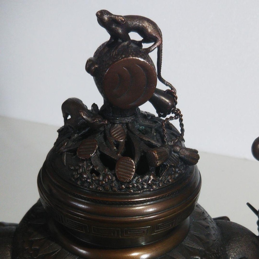 Item Title BIRD Mouse Rat Bronze 10.2 inch Censer KORO Japan Antique Old Incense Burner Art Description Height: 10.24 inch Width: 7.87 inch × 6.30 inch Stand is not included in the item. Please refer to the image for the detailed condition of the item.Please feel free to contact us if you have any concerns, such as the condition is difficult to understand by looking at the image. We will do our best to answer your question kindly and politely. Payment Supports managed payments Please pay within 5 days after auction is finished. About Us We are located in Japan. It's our pleasure to make you happy by proposing our recommend item. If you have any questions or request about items, please feel free to ask us. International Buyers - Please Note: -Import duties, taxes, and charges are not included in the item price or shipping charges. These charges are the buyer's responsibility. -Please check with your country's customs office to determine what these additional costs will be prior to bidding/buying. -These charges are normally collected by the delivering freight (shipping) company or when you pick the item up - do not confuse them for additional shipping charges. -We do not mark merchandise values below value or mark items as - gifts - The US and International government regulations prohibit such behavior. Thank you for your understanding.