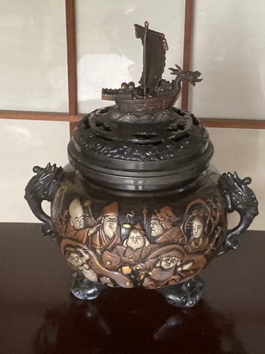 Item Title SEVEN LUCKY GODS Large Bronze CENSER KORO 11.8 inch Japan Vintage Incense Burner Description Height: 11.81 inch Width: 9.84 inch × 7.87 inchPlease refer to the image for the detailed condition of the item.Please feel free to contact us if you have any concerns, such as the condition is difficult to understand by looking at the image. We will do our best to answer your question kindly and politely. Payment Supports managed payments Please pay within 5 days after auction is finished. About Us We are located in Japan. It's our pleasure to make you happy by proposing our recommend item. If you have any questions or request about items, please feel free to ask us. International Buyers - Please Note: -Import duties, taxes, and charges are not included in the item price or shipping charges. These charges are the buyer's responsibility. -Please check with your country's customs office to determine what these additional costs will be prior to bidding/buying. -These charges are normally collected by the delivering freight (shipping) company or when you pick the item up - do not confuse them for additional shipping charges. -We do not mark merchandise values below value or mark items as - gifts - The US and International government regulations prohibit such behavior. Thank you for your understanding.