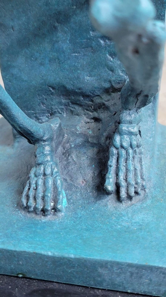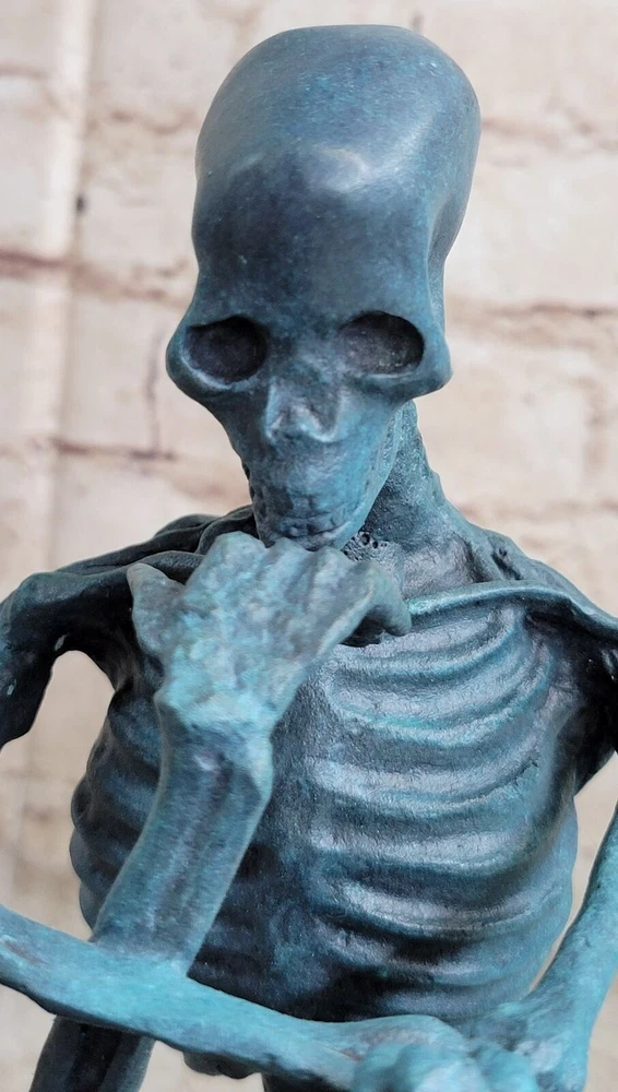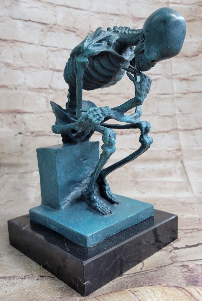 Condition :nbsp; This sculpture is in a perfect condition Bronze Dimensions with Marble Base :Height 10" X Width 8" Marble Dimensions:5" X 5" Height without base:9" Weight:10 LBS Inventory:63DS055C5636 Introducing a captivating bronze sculpture inspired by Auguste Rodin's iconic masterpiece, The Thinker. This rendition offers a unique twist, presenting a skeletal version of the renowned figure. Originally titled The Poet, The Thinker was intended to depict Dante contemplating a scene from his Divine Comedy. However, Rodin's vision transcended its initial context, embracing a more universal theme. This sculpture captures the essence of introspection and the internal struggle faced by individuals deep in thought. The skeletal figure is depicted in a stoic and contemplative pose, with one hand resting on the chin and the other elbow supported by the knee. The crouching position allows the sculpture to survey its surroundings with a profound and reflective gaze. The intricate details of the skeleton, from the curves of the spine to the exposed ribcage, are meticulously crafted, showcasing the artist's attention to anatomical accuracy. Crafted with utmost care, this sculpture is cast in 100% bronze using the revered "Lost Wax Method," ensuring its durability and timeless appeal. Mounted on a sturdy marble base, the sculpture exudes a sense of stability and elegance. It is signed by the esteemed artist Milo, a testament to its artistic value and authenticity. This thought-provoking sculpture serves as a reminder to embrace contemplation and the power of deep thinking, making it a remarkable addition to any collection. The Thinker Thinking Man Skeleton Bronze Metal Statue Sculpture Figure on Marble Base DS-055C Video will open in a new window Using the eBay App? Paste link into a browser window: [isdntekvideo]