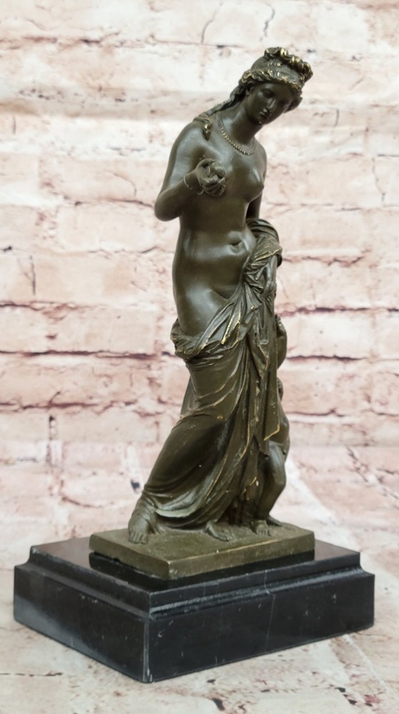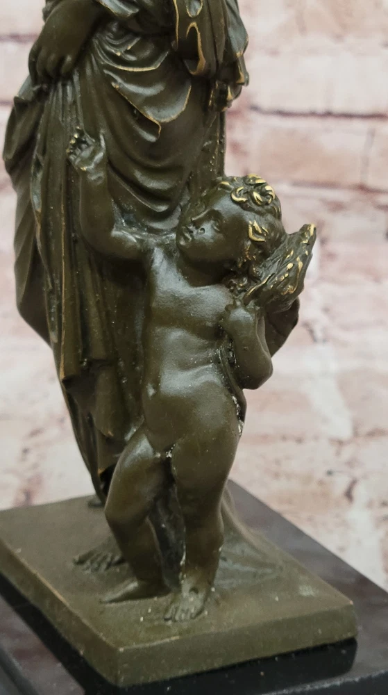 Romantic Bronze Sculpture Statue Venus with Cupid Greek Myth Figurine Deal Art Romantic Bronze Sculpture Statue Venus with Cupid Greek Myth Figurine Deal Art Condition : This sculpture is in perfect condition. Bronze Dimensions with Marble Base: Height 11" X Width 5.5" Marble Dimensions:5.5" X 4" Height without base:10" Weight:6 LBS Inventory:17GTS2076671 This elegant bronze sculpture captures the timeless beauty of Venus, the Roman goddess of love, accompanied by Cupid, her playful and mischievous son. Venus is portrayed with classical grace, her flowing form embodying both femininity and divine allure. Beside her, Cupid clings affectionately, adding charm and emotional depth to the composition. Handmade using the traditional lost wax method, this piece reflects exceptional craftsmanship and artistic sensitivity. The rich brown patina adds warmth and enhances the fine detailing in their hair, drapery, and expressions, bringing the mythological figures vividly to life. Signed by Jean Patoue, the sculpture is securely mounted on a polished black marble base, offering a striking contrast and a touch of sophistication. This captivating piece is perfect for lovers of classical mythology, fine art, or those looking to add a romantic and elegant focal point to their space. Shipping Terms : Most of our items are shipped via USPS (United States Postal Service) mail or UPS. Most orders are shipped within 24-48 hours of purchase. Please be aware that not all items are available for USPS shipping due to size and weight. We do ship to Hawaii, Alaska, Canada, Puerto Rico, APO/AE, and U.S. Virgin Islands, however, an additional charge may be required. Please contact us before making any purchases in these areas. For Non-USA customers, you may be responsible for all duty, tax, brokerage fees that may be due upon delivery (shipping costs cover freight charges only). We also ship internationally. Please refer to the "Shipping and Handling" chart for the rates for each area. Payment : We accept just about any form of payment. PayPal, Master Card, Visa or American Express credit cards. Money orders, cashiers checks, and even personal or business checks. For governmental institutions, we will also accept a purchase order. Please understand that for personal or business checks we have to wait for the check to clear (usually 7 days) before shipping. Condition : New Detailed Hand Crafted Hot Cast Bronze Satisfaction Guaranteed. This is Stock Photo, Slight Color Variation!! Listing and template services provided by inkFrog