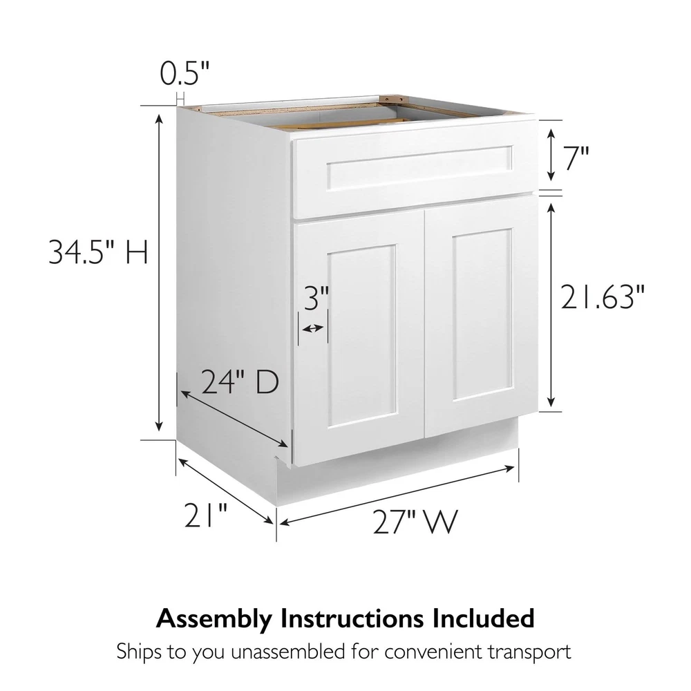 This cabinet is a fantastic addition to any kitchen or bathroom! The clean white finish and double-door design with a single drawer offer both style and functionality. Assembly was straightforward, and the included hardware made it easy. The interior is smooth and well-finished, perfect for storage. Sturdy construction and easy-to-clean surfaces make it a practical choice. Very happy with this purchase—great quality for the price!