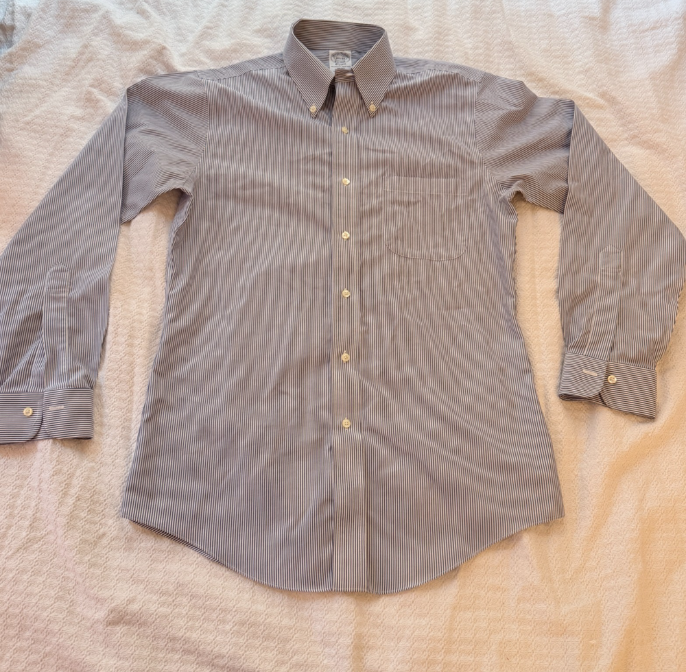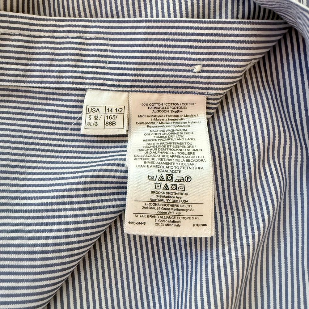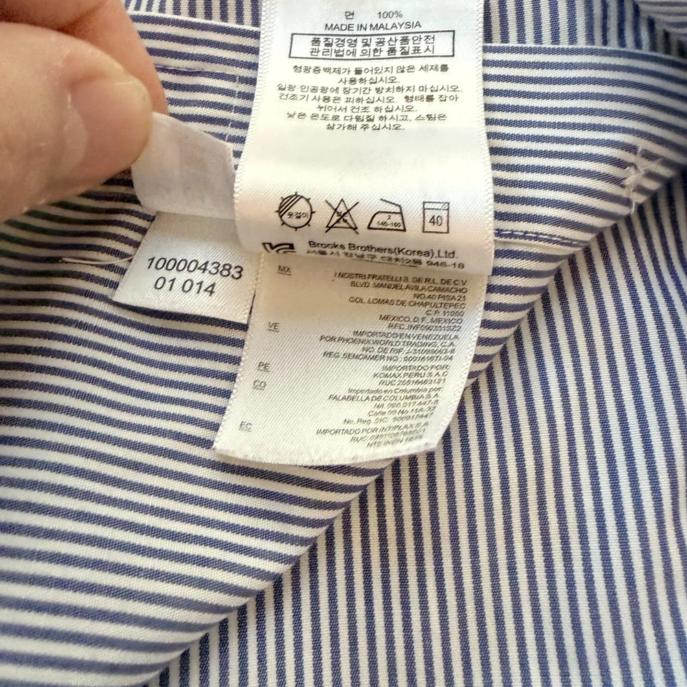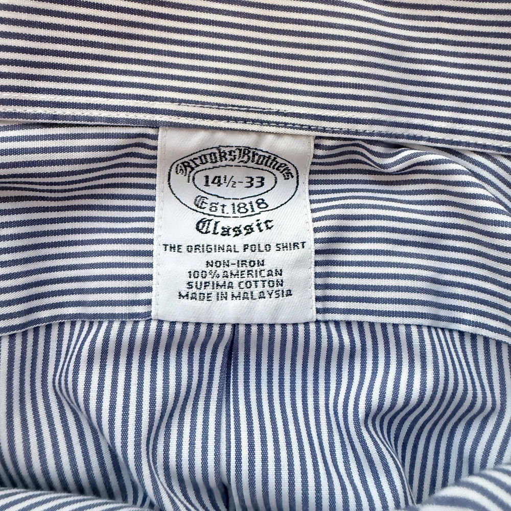 Item Details This classic Brooks Brothers button-down combines the luxury of 100% American Supima cotton with the convenience of a non-iron finish for a crisp, professional look all day long. Features: Brand: Brooks Brothers Color: Blue and White Bengal Stripe Closure: Full button-front with button-down collar Pockets: Single open chest pocket Details: "The Original Polo Shirt" styling, 6-pleat shirring at the cuffs, and iconic "Classic" fit. Material: 100% American Supima Cotton Care: Machine wash warm; tumble dry low; remove promptly and hang.