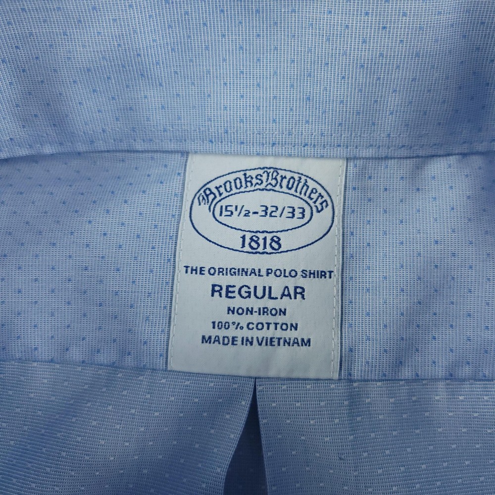 Brooks Brothers Dress Shirt Mens 15.5 Regular Blue Geometric Non Iron Cotton Brand: Brooks Brothers Style: Mens long sleeve button-front dress shirt with a button-down collar and regular fit silhouette. Color: Light blue base with subtle micro geometric dot pattern. Size : Mens 15.5 Material: 100% cotton non-iron woven fabric. Made in Vietnam. Details: Inner neck label with Brooks Brothers 1818 branding and The Original Polo Shirt wording, full front button placket with white buttons, button-down collar points, single left chest pocket, barrel cuffs with adjustable buttons plus sleeve placket button, back yoke with center box pleat, and curved shirttail hem. Features: Easy-care non-iron construction designed to resist wrinkles, breathable cotton fabric suitable for all-season wear, classic button-down collar for a polished look, and versatile style ideal for business, office, or smart casual occasions. Measurements are included in the photos, compare measurements with your item to ensure proper fit. Items are added daily click here to Visit My Store Combined shipping for US customers is 1.99 for each additional item Items are cleaned per eBay standards & policies