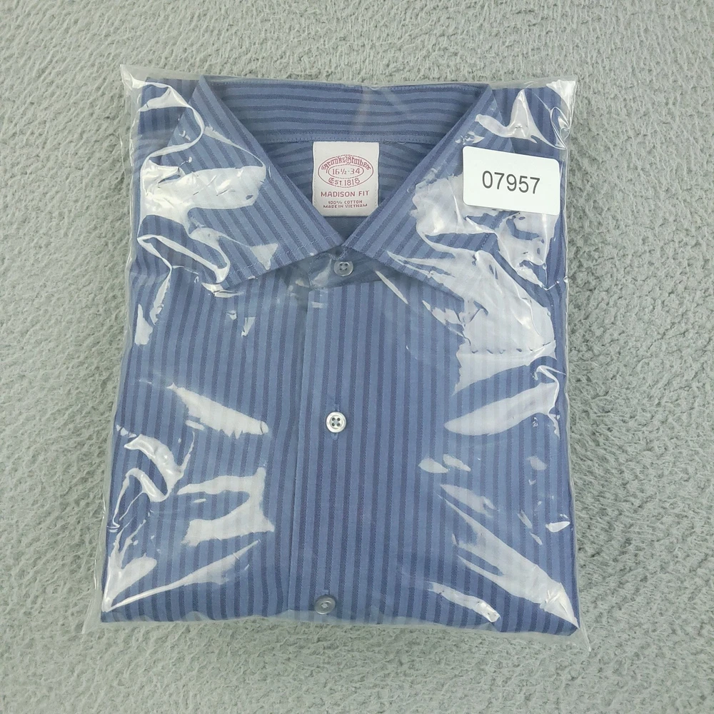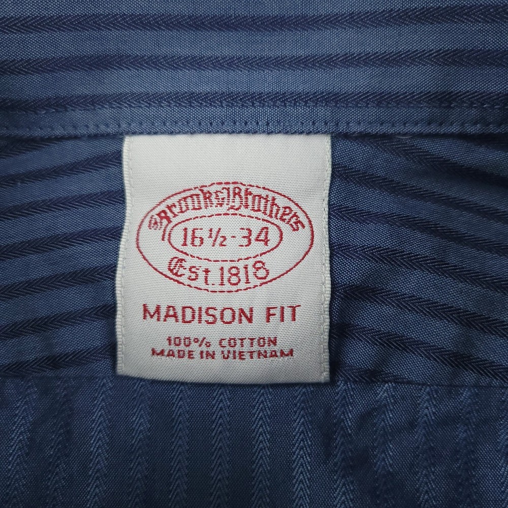 Brooks Brothers Dress Shirt Mens 16.5 Blue Stripe Madison Fit Cotton Brand: Brooks Brothers Style: Mens long sleeve dress shirt with full button front placket, spread collar, and classic Madison fit silhouette. Color: Blue with tonal vertical stripe pattern. Size on tag: Mens 16 1/2 Material: 100% cotton woven fabric. Made in Vietnam. Features: Classic dress shirt styling suitable for business or office wear, crisp spread collar, barrel cuffs closure and sleeve placket button, shirt-tail hem designed to be tucked in, subtle textured stripe for a polished professional look. Measurements are included in the photos, compare measurements with your item to ensure proper fit. Items are added daily click here to Visit My Store Combined shipping for US customers is 1.99 for each additional item Items are cleaned per eBay standards & policies
