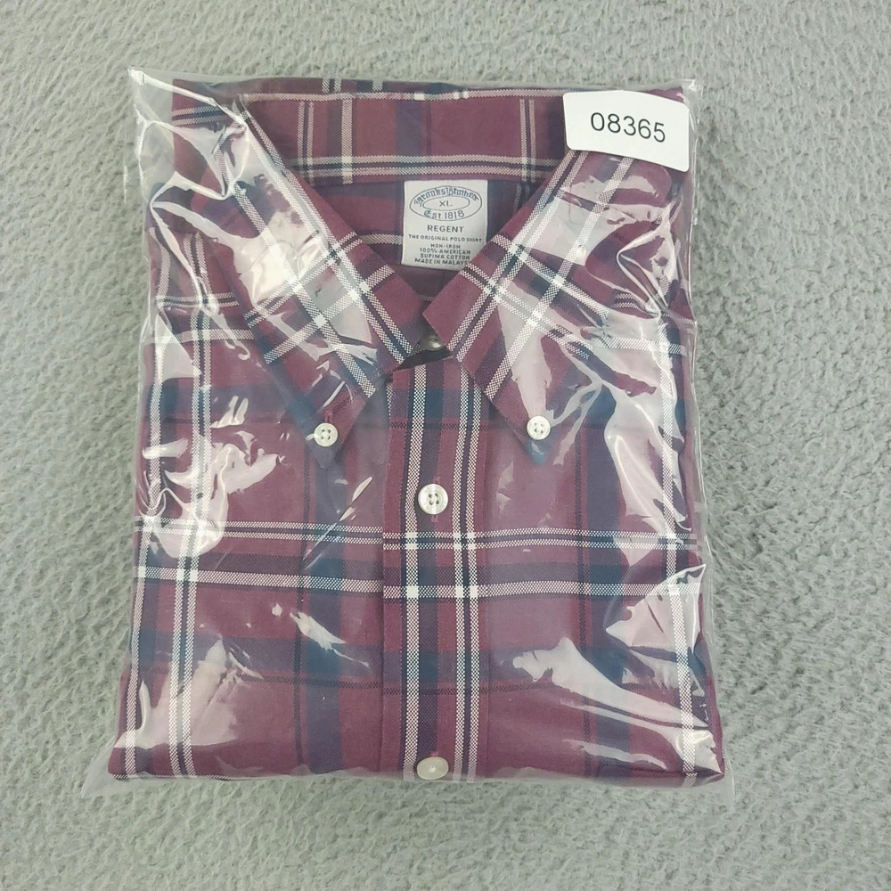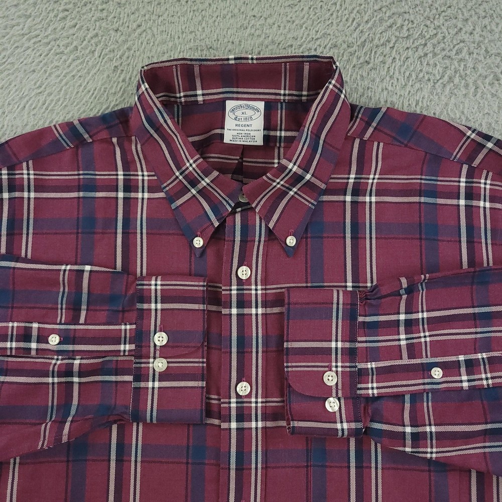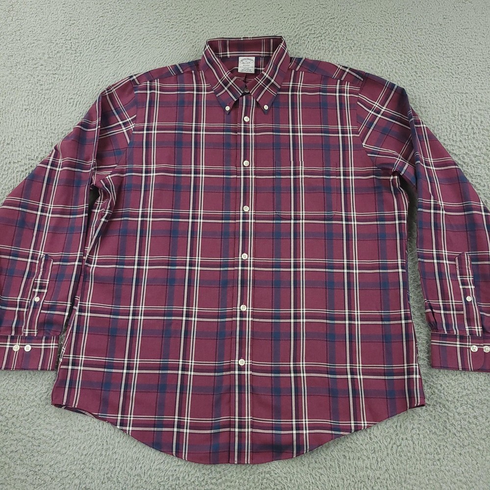 Brooks Brothers Dress Shirt Mens XL Red Plaid Regent Non Iron Supima Cotton Brand: Brooks Brothers. Style: Mens long sleeve dress shirt with button-front placket and button-down collar. Color: Red base with navy blue and white plaid pattern. Size on tag: Mens XL Material: 100% American Supima cotton woven fabric. Made in Malaysia. Features: Button-down point collar, full button-front placket with white buttons, long sleeves with barrel cuffs and adjustable buttons plus sleeve plackets, single chest patch pocket, curved shirttail hem, back yoke with box pleat, Regent fit silhouette, non-iron finish for easy care, and inner neck tag with Brooks Brothers branding plus care and fiber content information. Measurements are included in the photos, compare measurements with your item to ensure proper fit. Items are added daily click here to Visit My Store Combined shipping for US customers is 1.99 for each additional item Items are cleaned per eBay standards & policies
