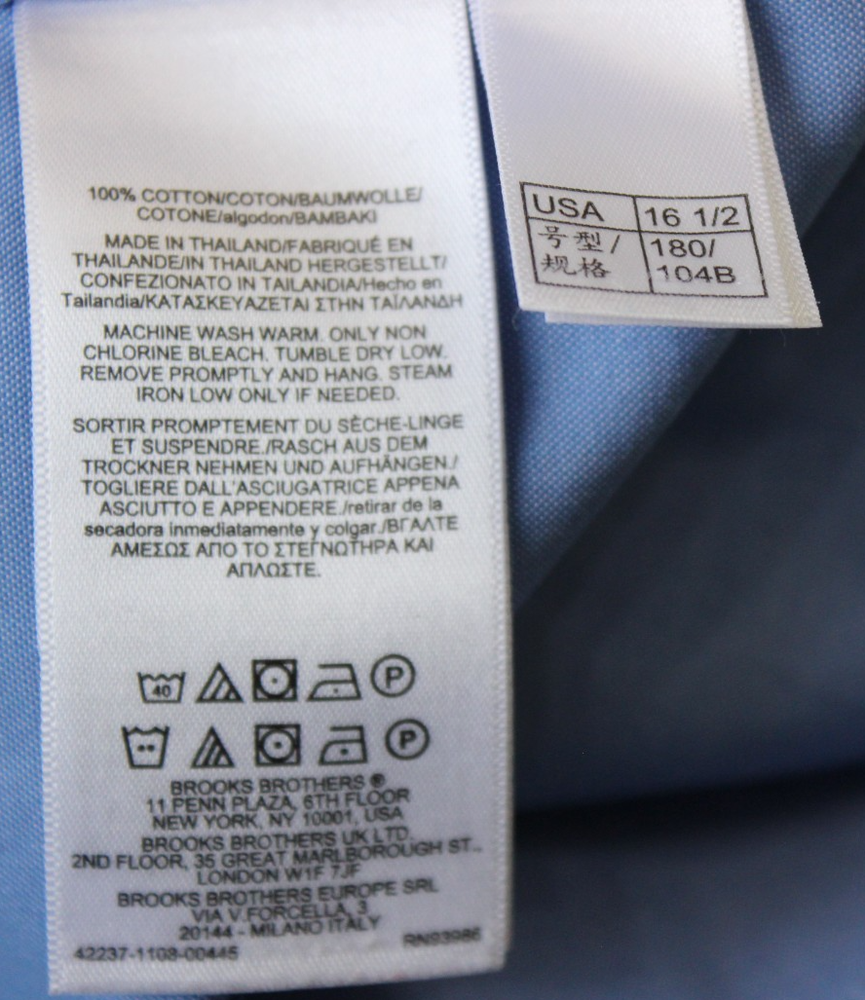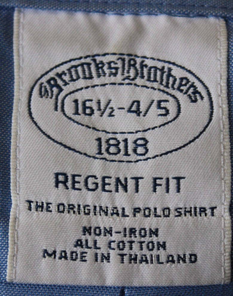 The Brooks Brothers Men's Regent Fit Button-Up Shirt in size 16.5-4/5 is a classic and versatile piece for any man's wardrobe. Made from woven cotton fabric with a solid blue color, this shirt features a button-down collar, long sleeves, and a barrel cuff. Ideal for various occasions such as formal events, business meetings, or casual outings, this shirt is designed for regular fit and is machine washable for easy care. The shirt also includes non-iron feature, all seasons suitability, and pockets for added convenience. With its timeless style and quality construction, this shirt embodies the American classic and modern theme.